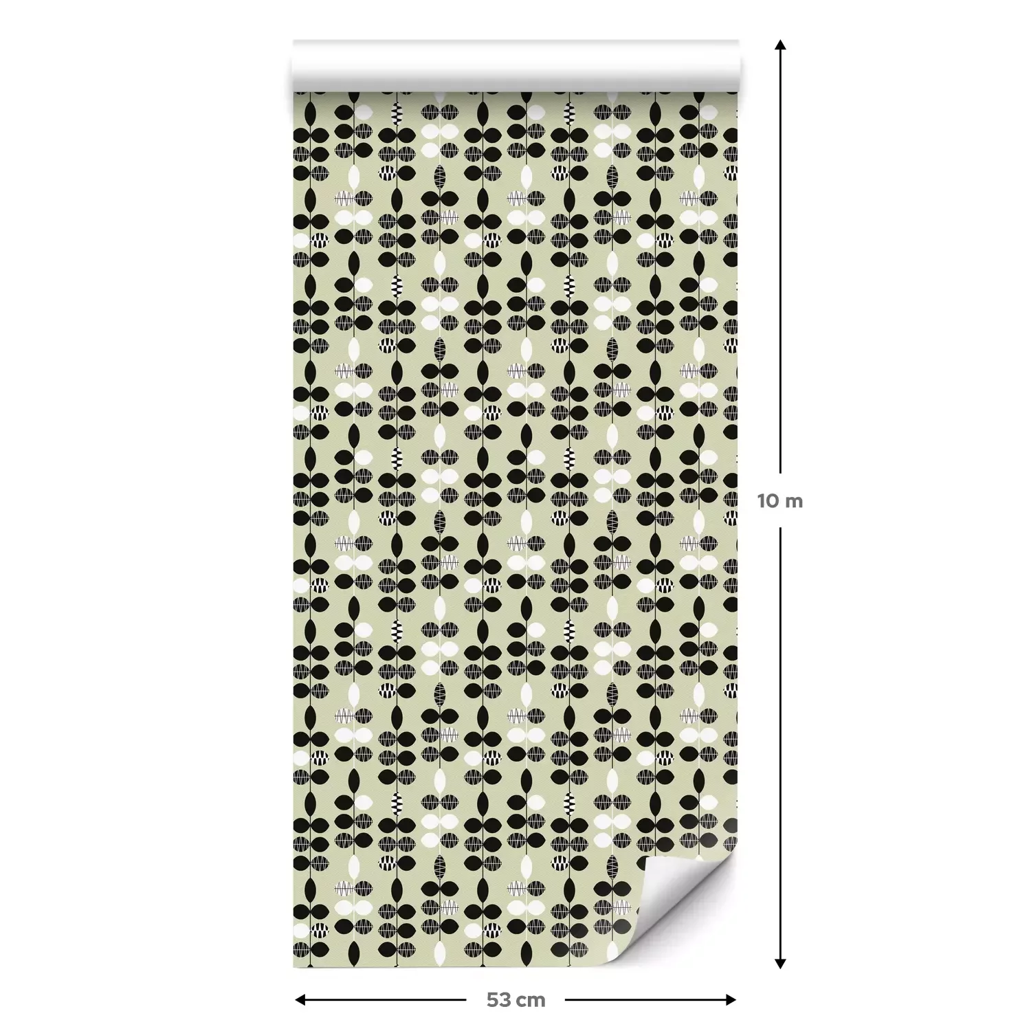 Eine Standard-Tapetenrolle hat die Maße 0,53 m x 10 m und deckt eine Wandfläche von etwa 5 m² ab.