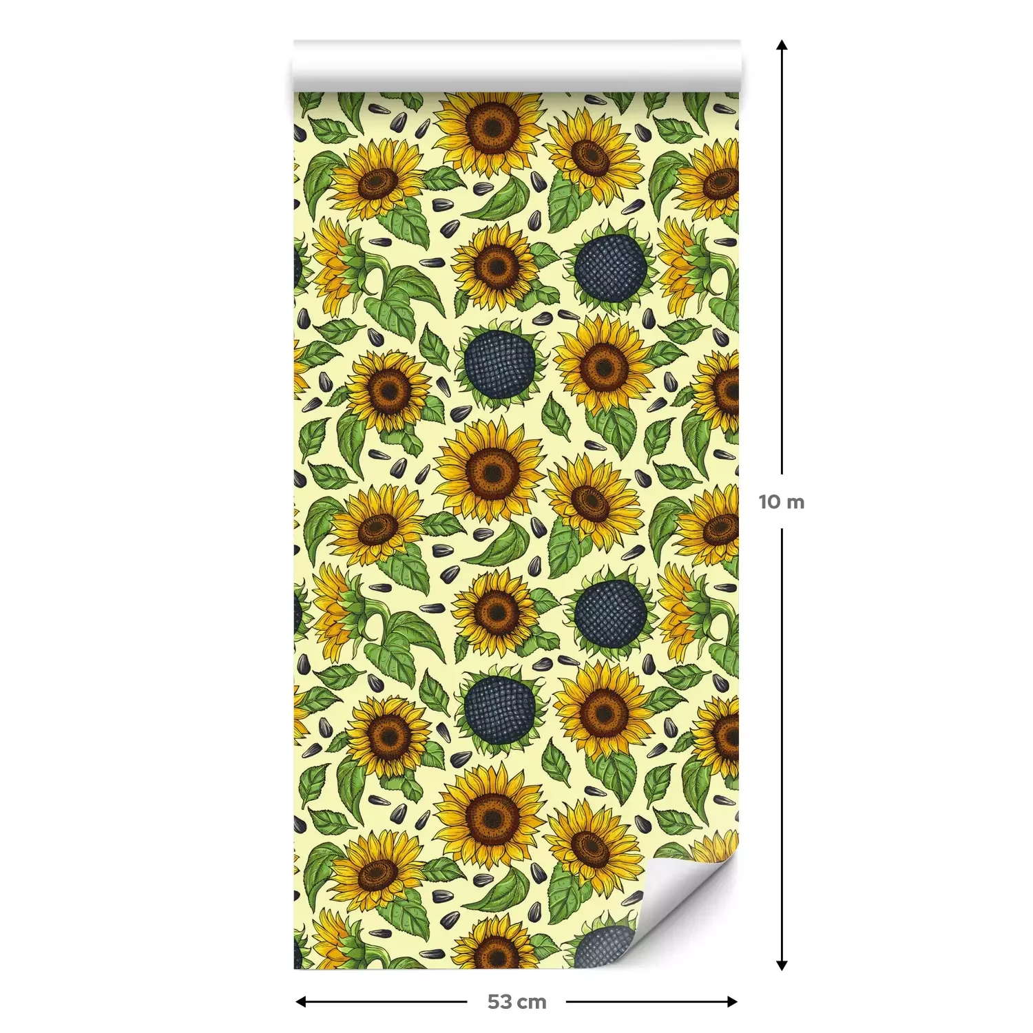 Eine Standard-Tapetenrolle hat die Maße 0,53 m x 10 m und deckt eine Wandfläche von etwa 5 m² ab.