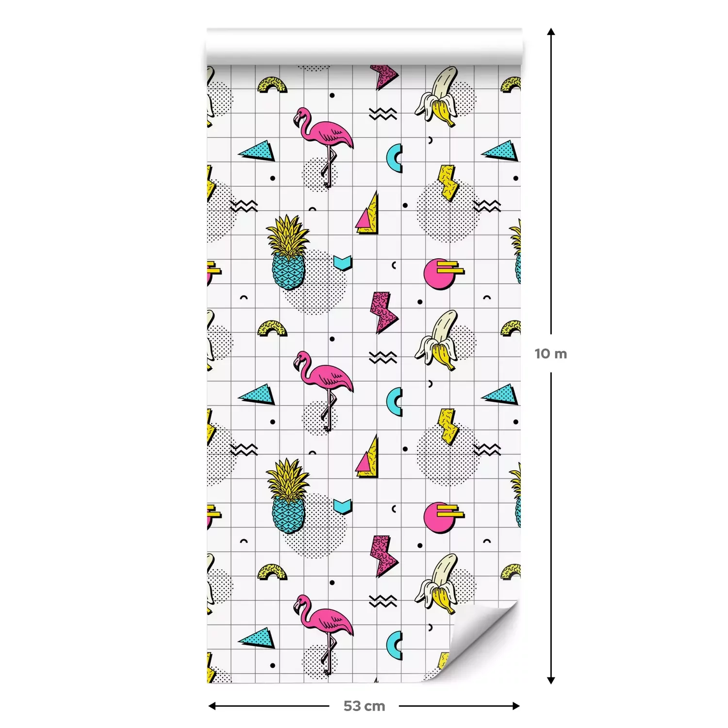 Eine Standard-Tapetenrolle hat die Maße 0,53 m x 10 m und deckt eine Wandfläche von etwa 5 m² ab.