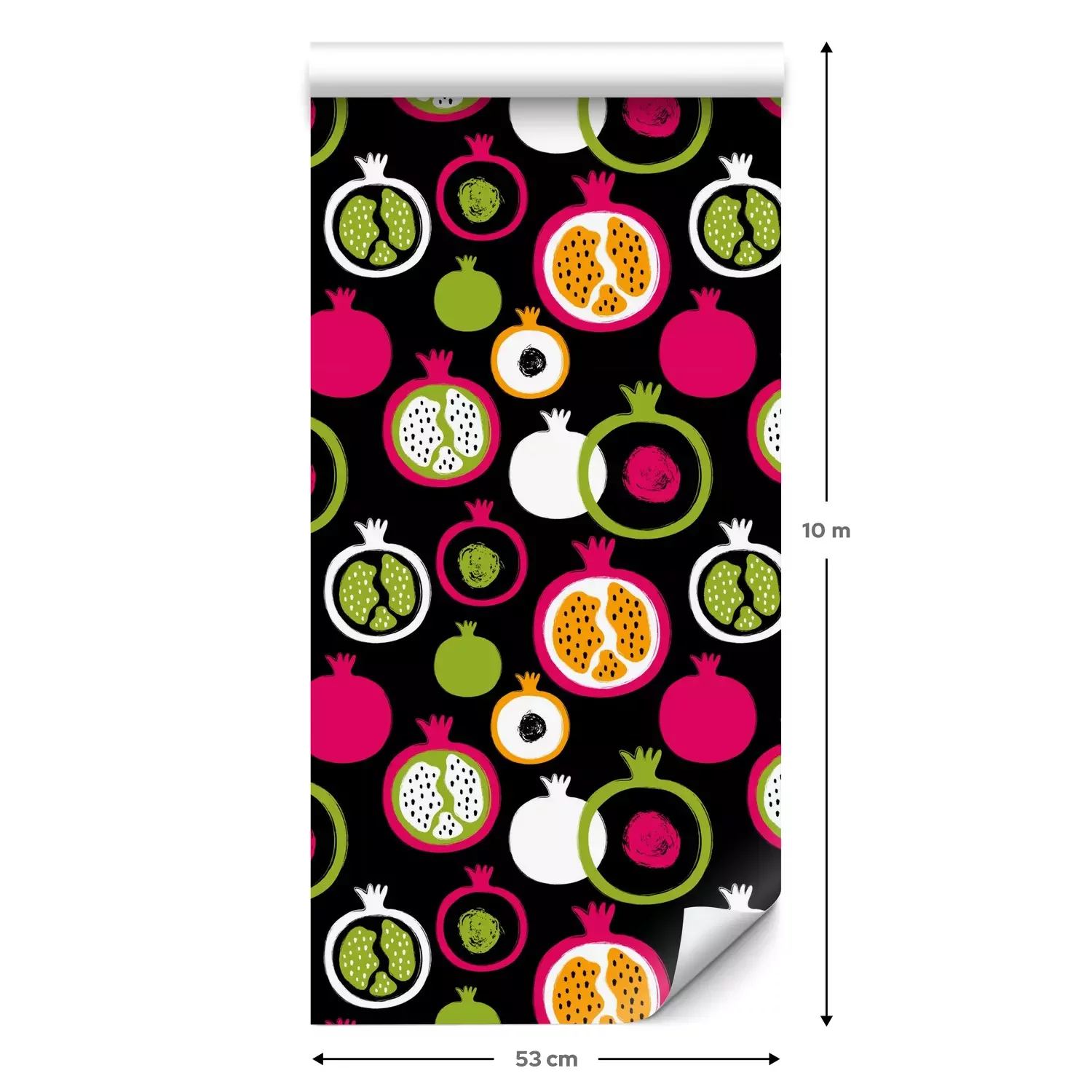 Eine Standard-Tapetenrolle hat die Maße 0,53 m x 10 m und deckt eine Wandfläche von etwa 5 m² ab.