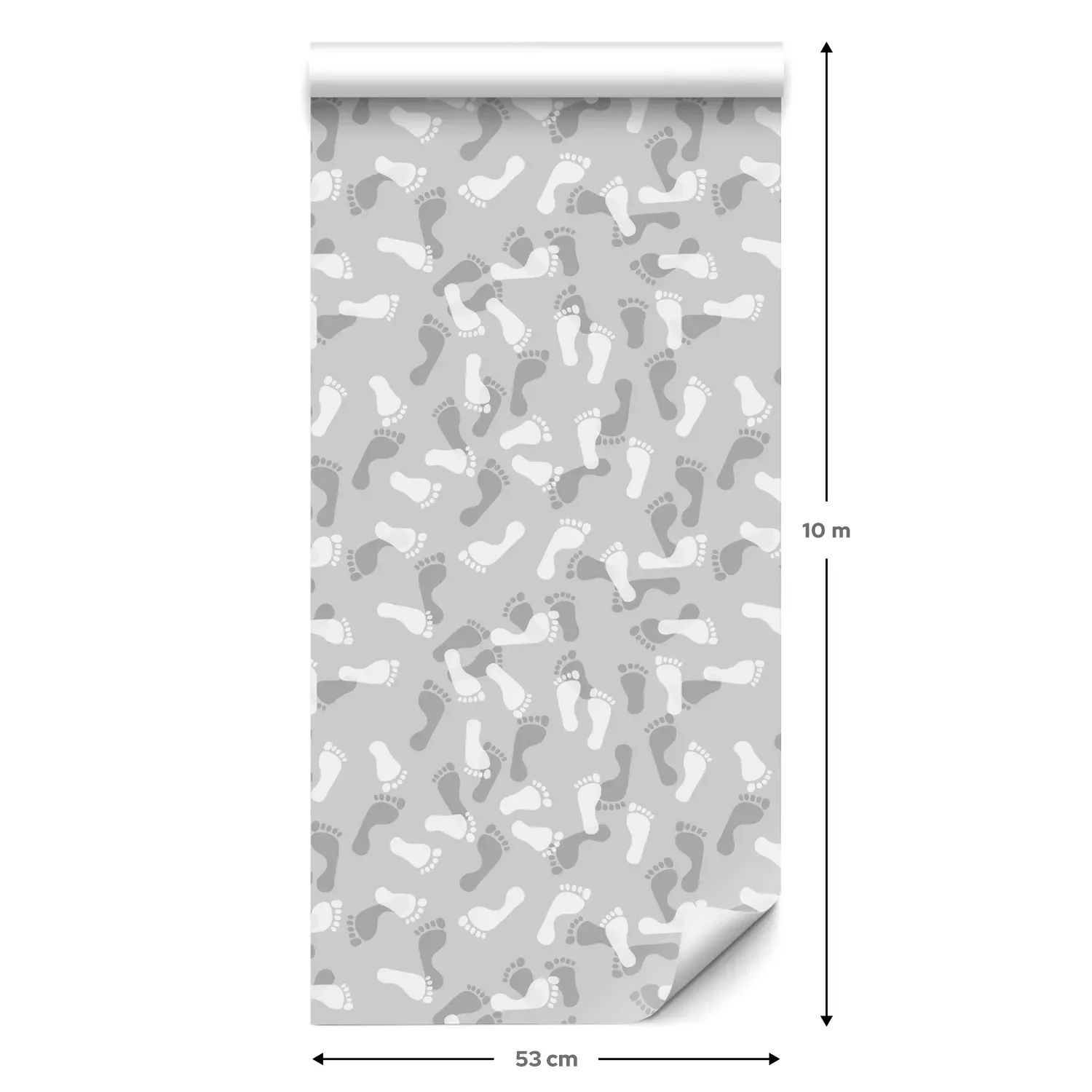 Eine Standard-Tapetenrolle hat die Maße 0,53 m x 10 m und deckt eine Wandfläche von etwa 5 m² ab.
