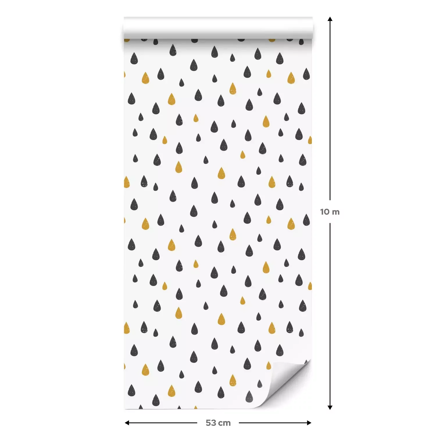 Eine Standard-Tapetenrolle hat die Maße 0,53 m x 10 m und deckt eine Wandfläche von etwa 5 m² ab.