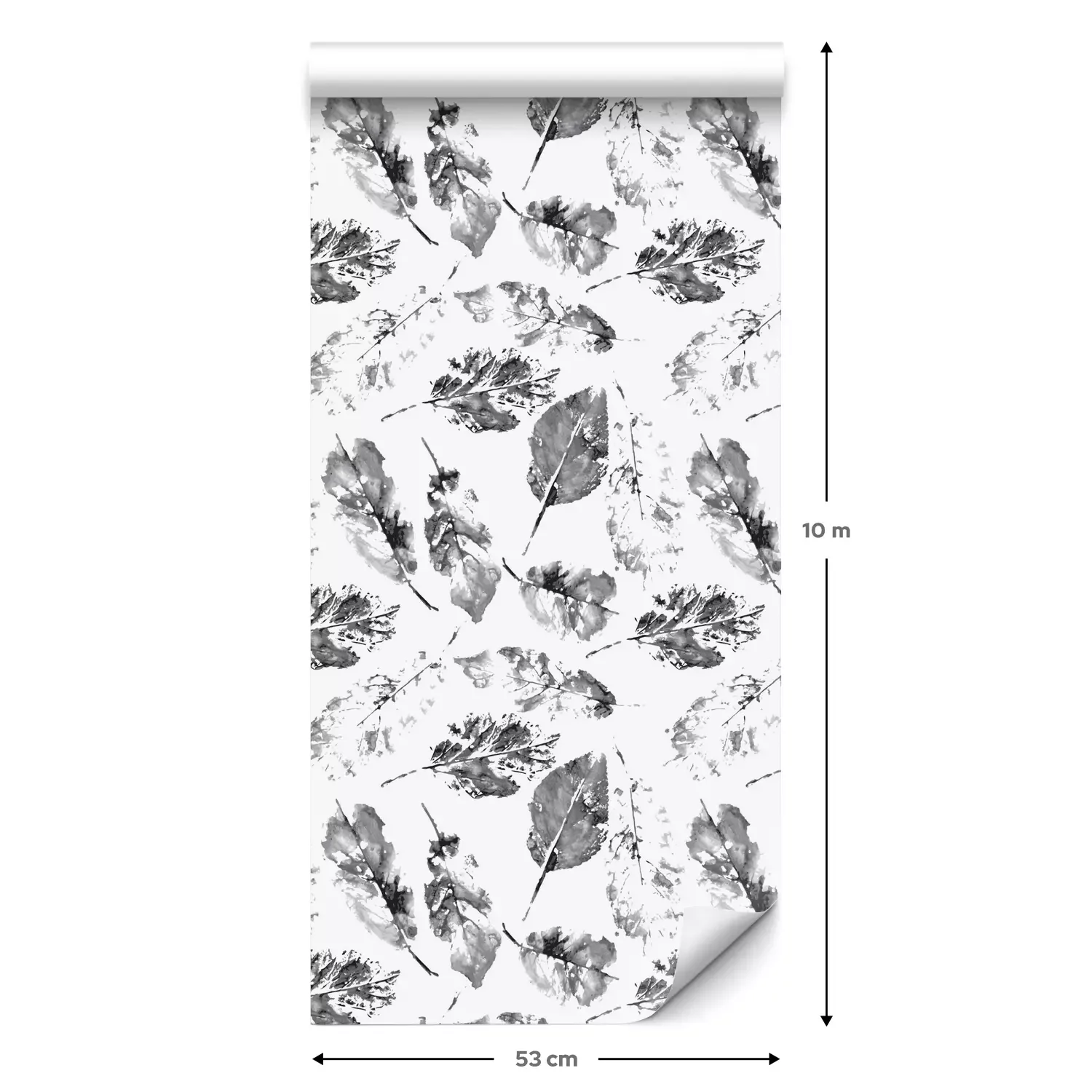 Eine Standard-Tapetenrolle hat die Maße 0,53 m x 10 m und deckt eine Wandfläche von etwa 5 m² ab.
