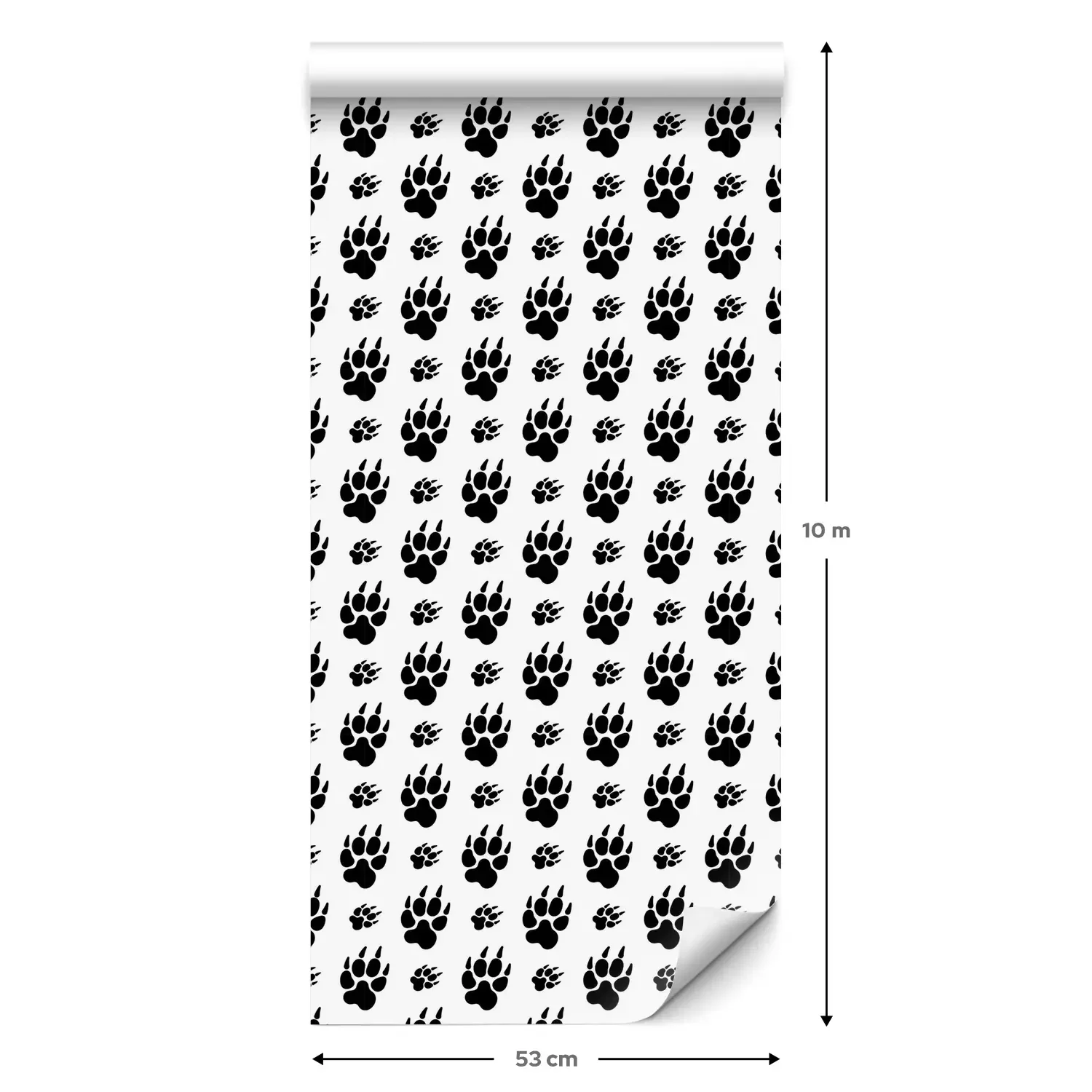 Eine Standard-Tapetenrolle hat die Maße 0,53 m x 10 m und deckt eine Wandfläche von etwa 5 m² ab.