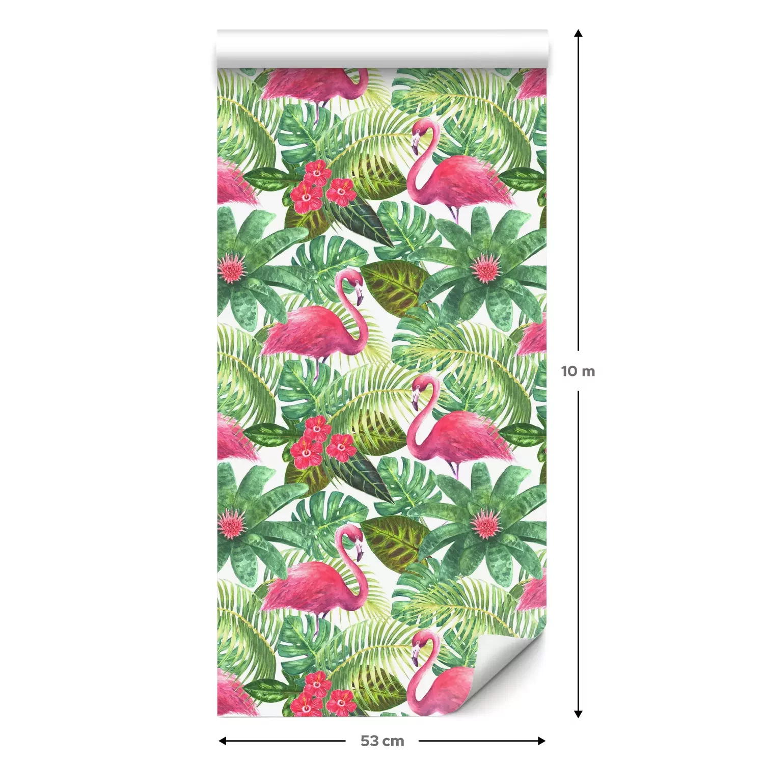 Eine Standard-Tapetenrolle hat die Maße 0,53 m x 10 m und deckt eine Wandfläche von etwa 5 m² ab.