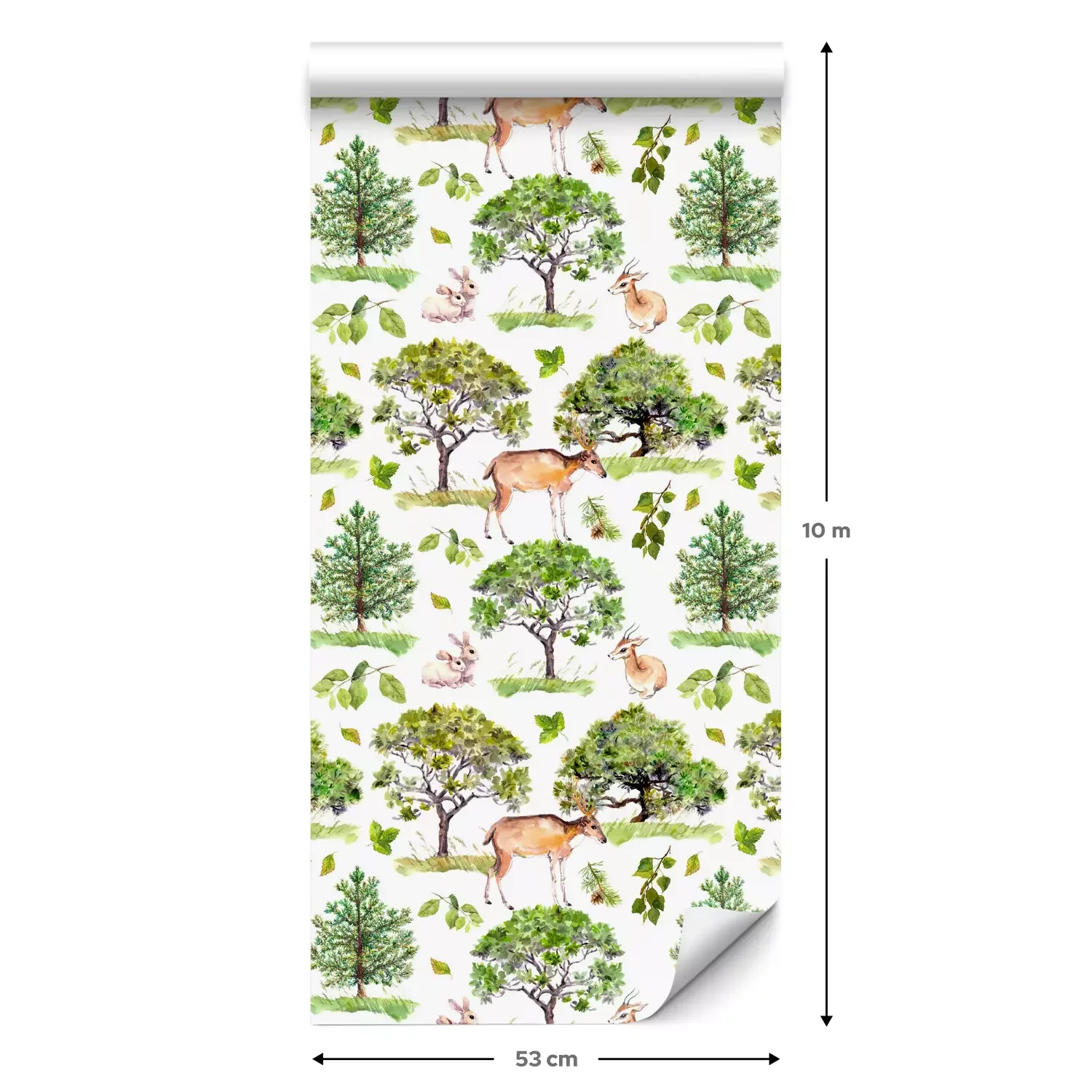 Eine Standard-Tapetenrolle hat die Maße 0,53 m x 10 m und deckt eine Wandfläche von etwa 5 m² ab.