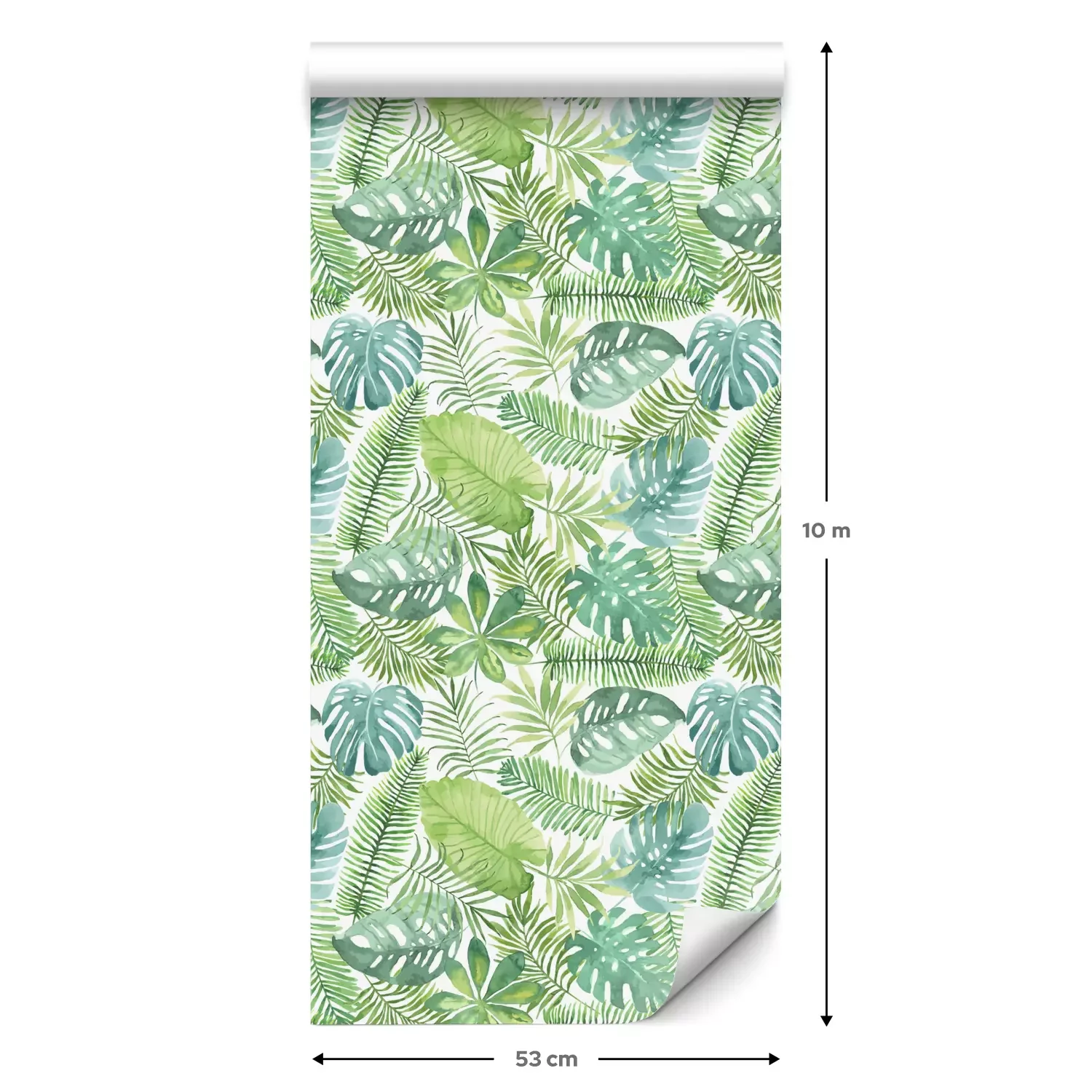 Eine Standard-Tapetenrolle hat die Maße 0,53 m x 10 m und deckt eine Wandfläche von etwa 5 m² ab.