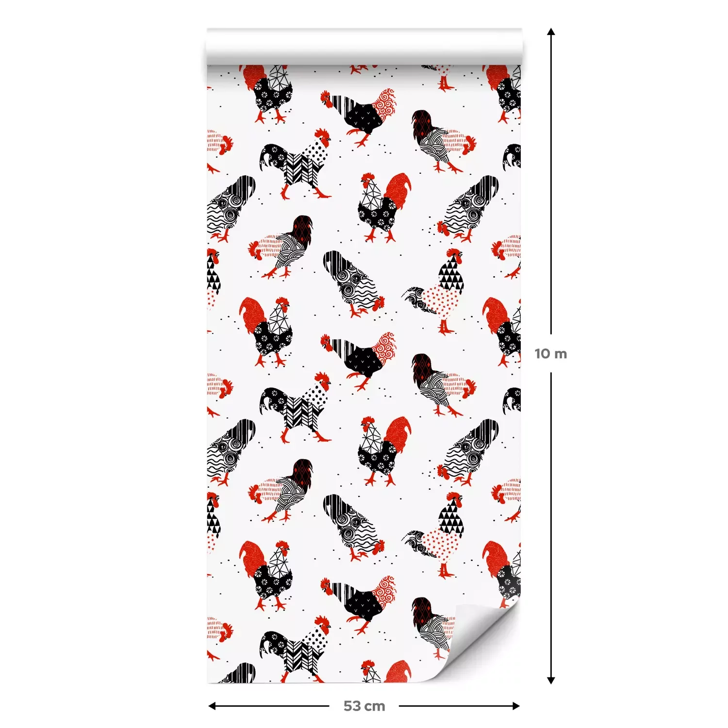 Eine Standard-Tapetenrolle hat die Maße 0,53 m x 10 m und deckt eine Wandfläche von etwa 5 m² ab.