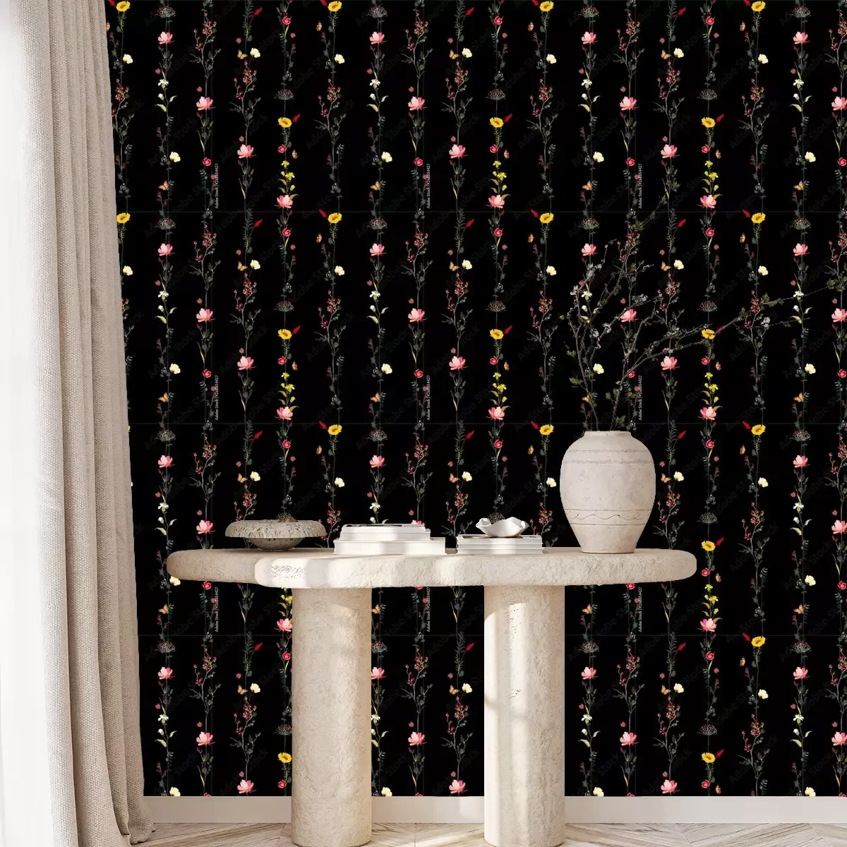 Tapete Hängende Blumenverzierung