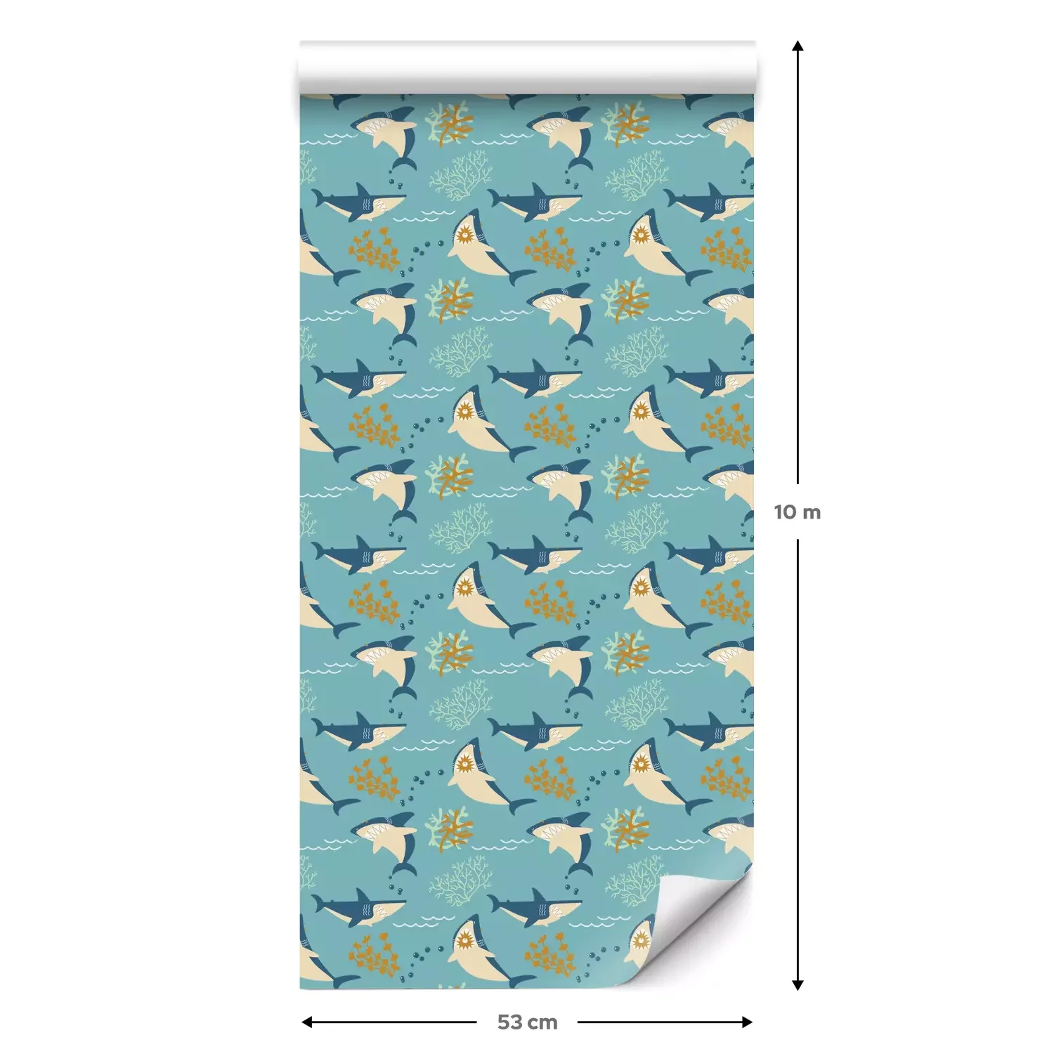 Eine Standard-Tapetenrolle hat die Maße 0,53 m x 10 m und deckt eine Wandfläche von etwa 5 m² ab.