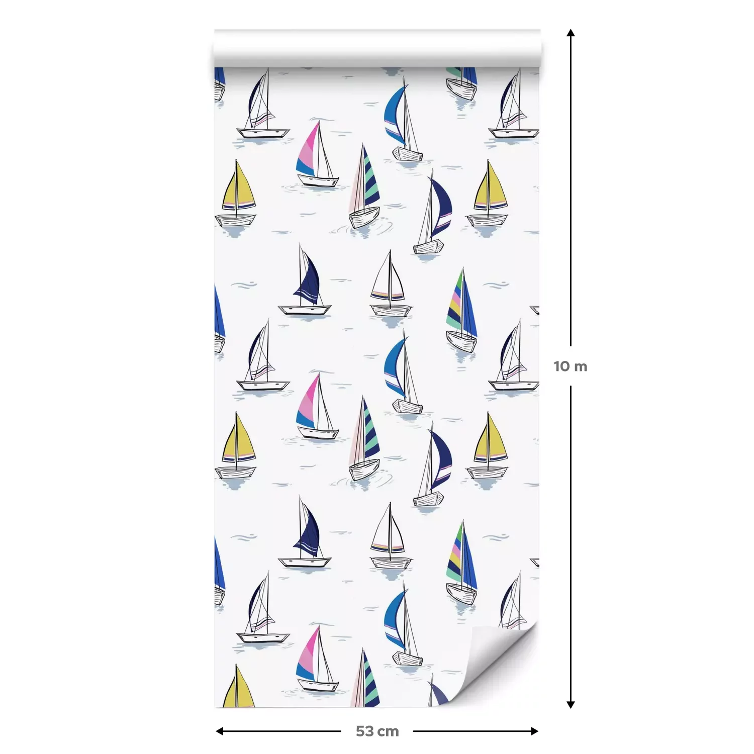 Eine Standard-Tapetenrolle hat die Maße 0,53 m x 10 m und deckt eine Wandfläche von etwa 5 m² ab.