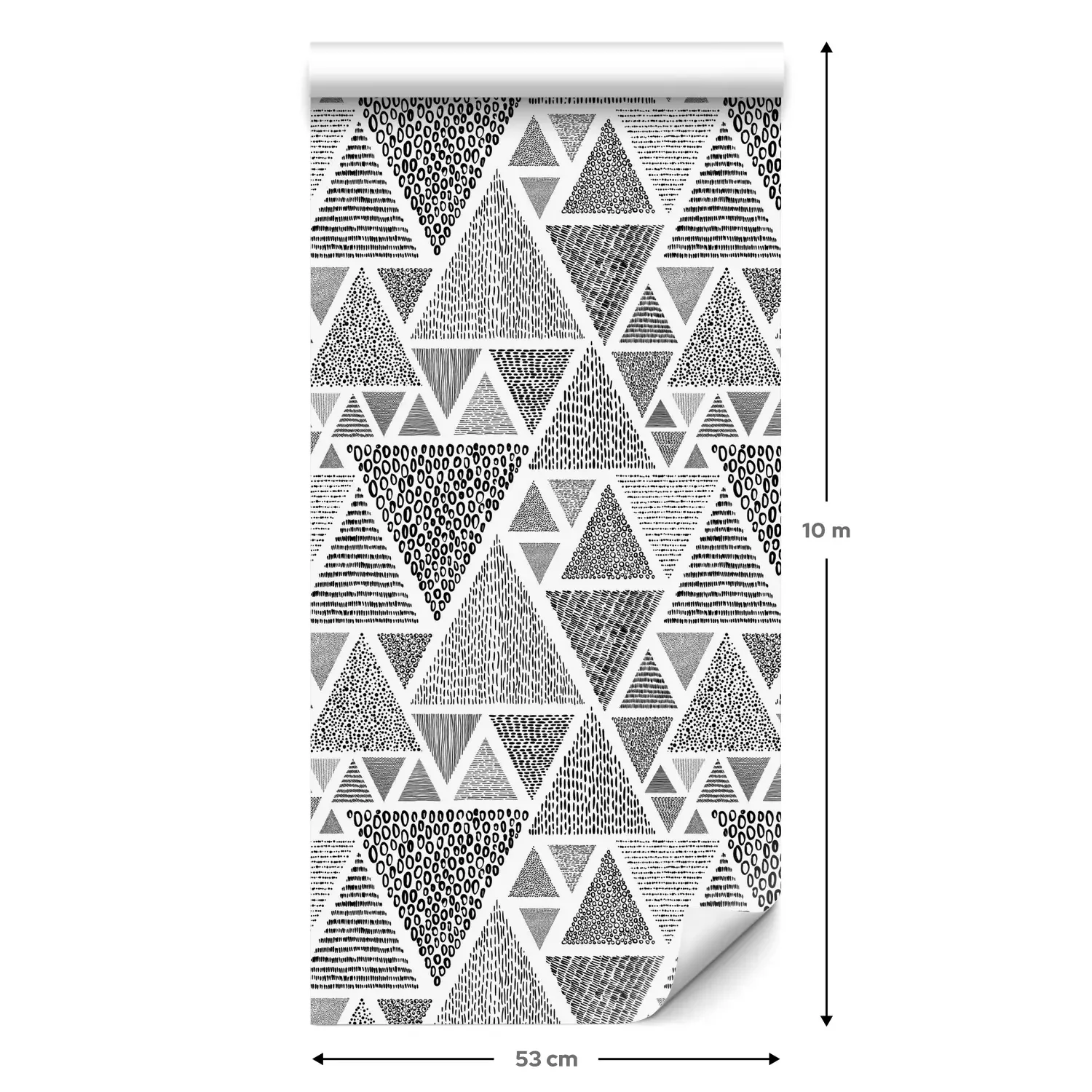 Eine Standard-Tapetenrolle hat die Maße 0,53 m x 10 m und deckt eine Wandfläche von etwa 5 m² ab.