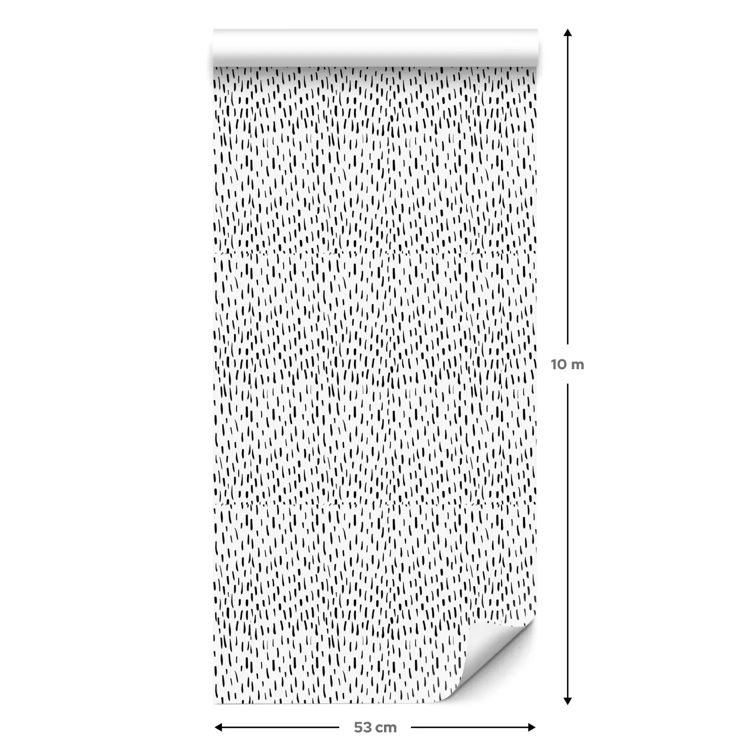 Eine Standard-Tapetenrolle hat die Maße 0,53 m x 10 m und deckt eine Wandfläche von etwa 5 m² ab.