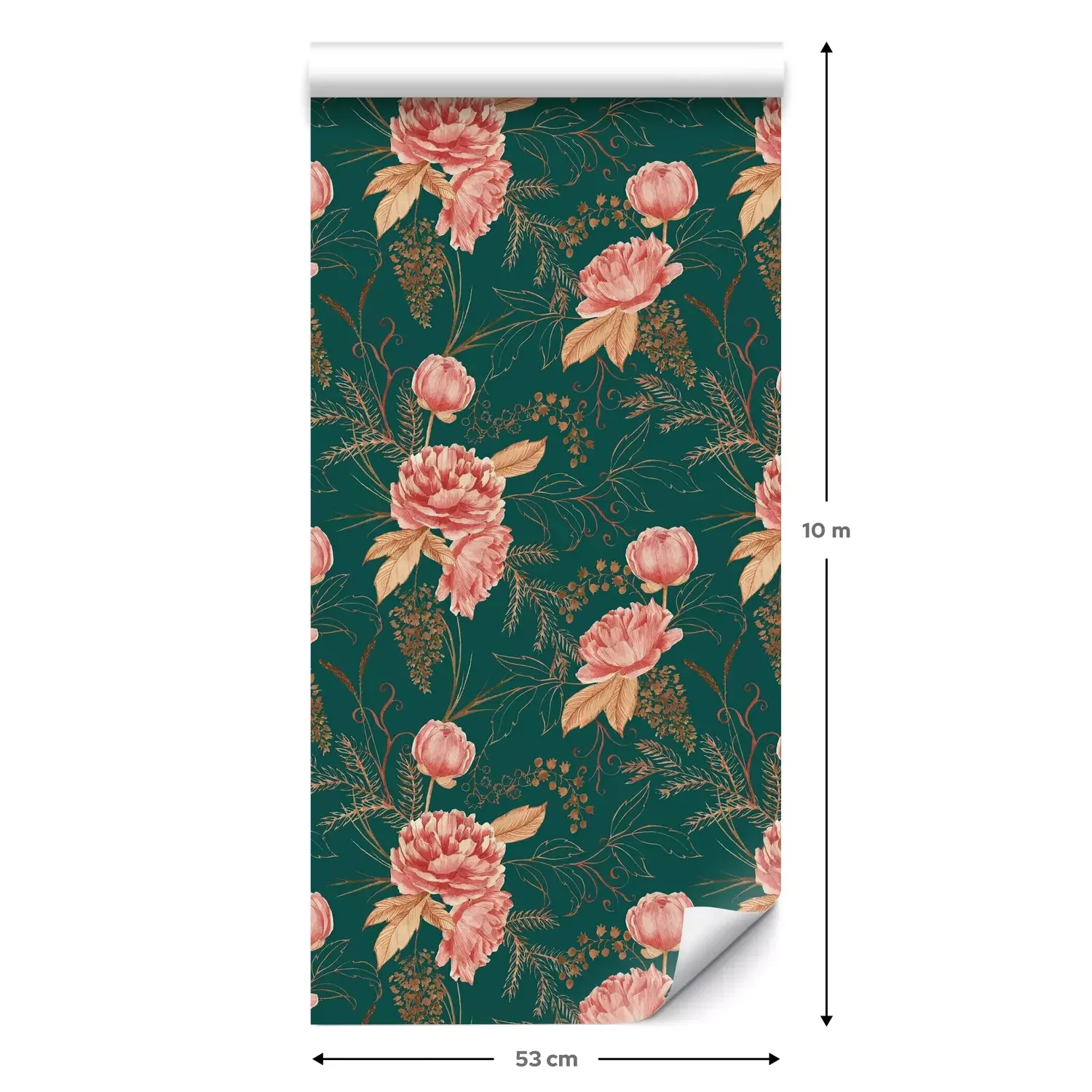 Eine Standard-Tapetenrolle hat die Maße 0,53 m x 10 m und deckt eine Wandfläche von etwa 5 m² ab.