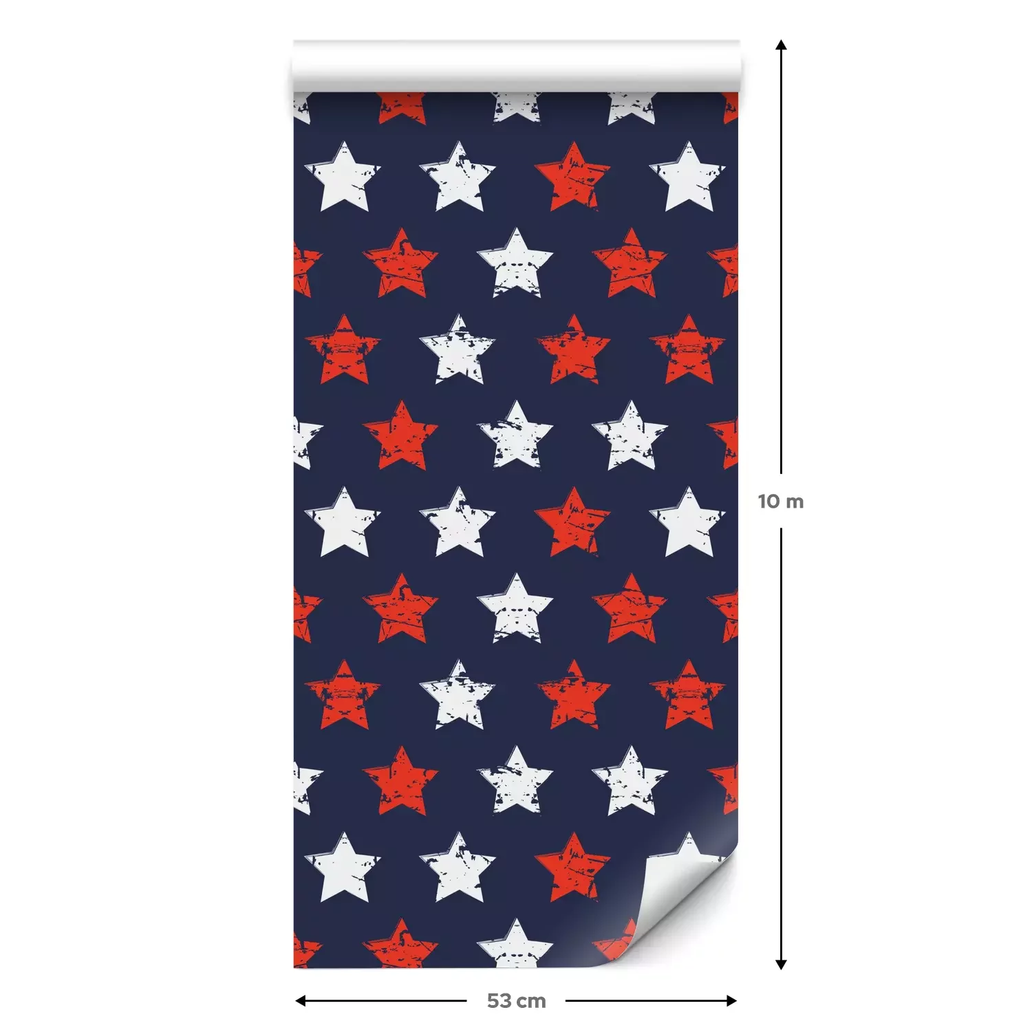 Eine Standard-Tapetenrolle hat die Maße 0,53 m x 10 m und deckt eine Wandfläche von etwa 5 m² ab.