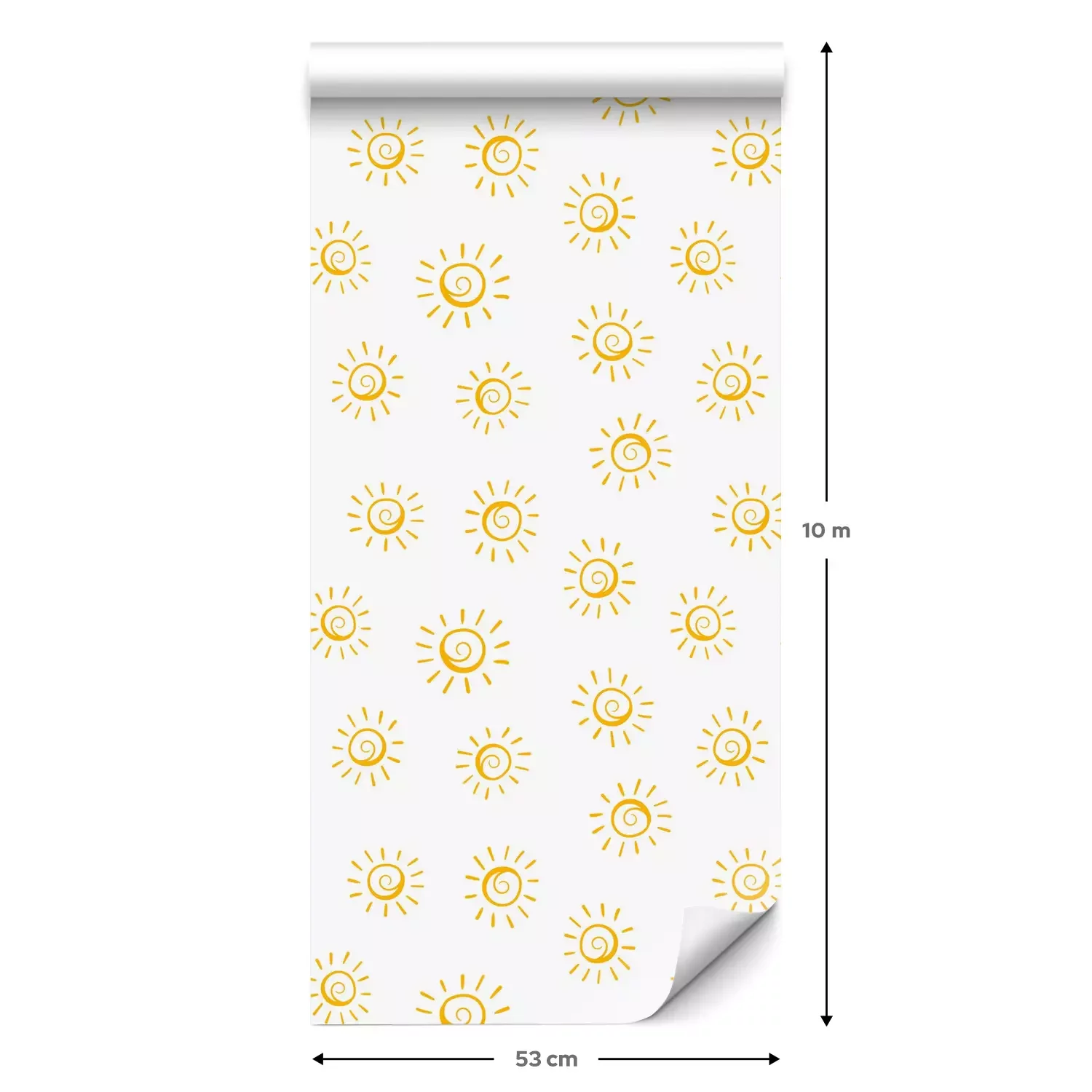 Eine Standard-Tapetenrolle hat die Maße 0,53 m x 10 m und deckt eine Wandfläche von etwa 5 m² ab.