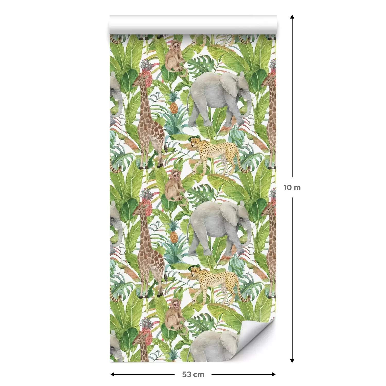 Eine Standard-Tapetenrolle hat die Maße 0,53 m x 10 m und deckt eine Wandfläche von etwa 5 m² ab.