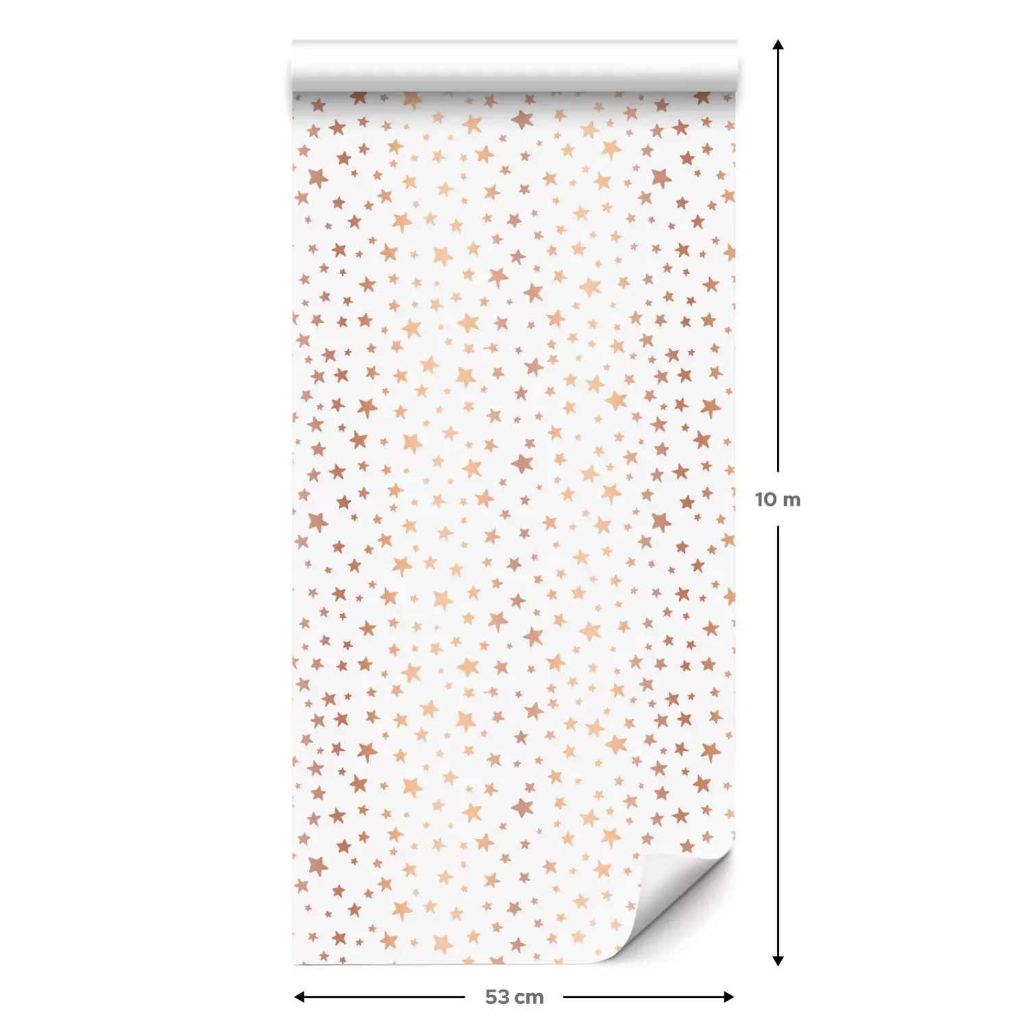 Eine Standard-Tapetenrolle hat die Maße 0,53 m x 10 m und deckt eine Wandfläche von etwa 5 m² ab.