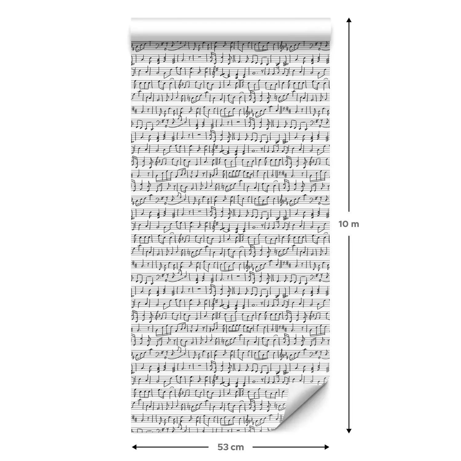 Eine Standard-Tapetenrolle hat die Maße 0,53 m x 10 m und deckt eine Wandfläche von etwa 5 m² ab.