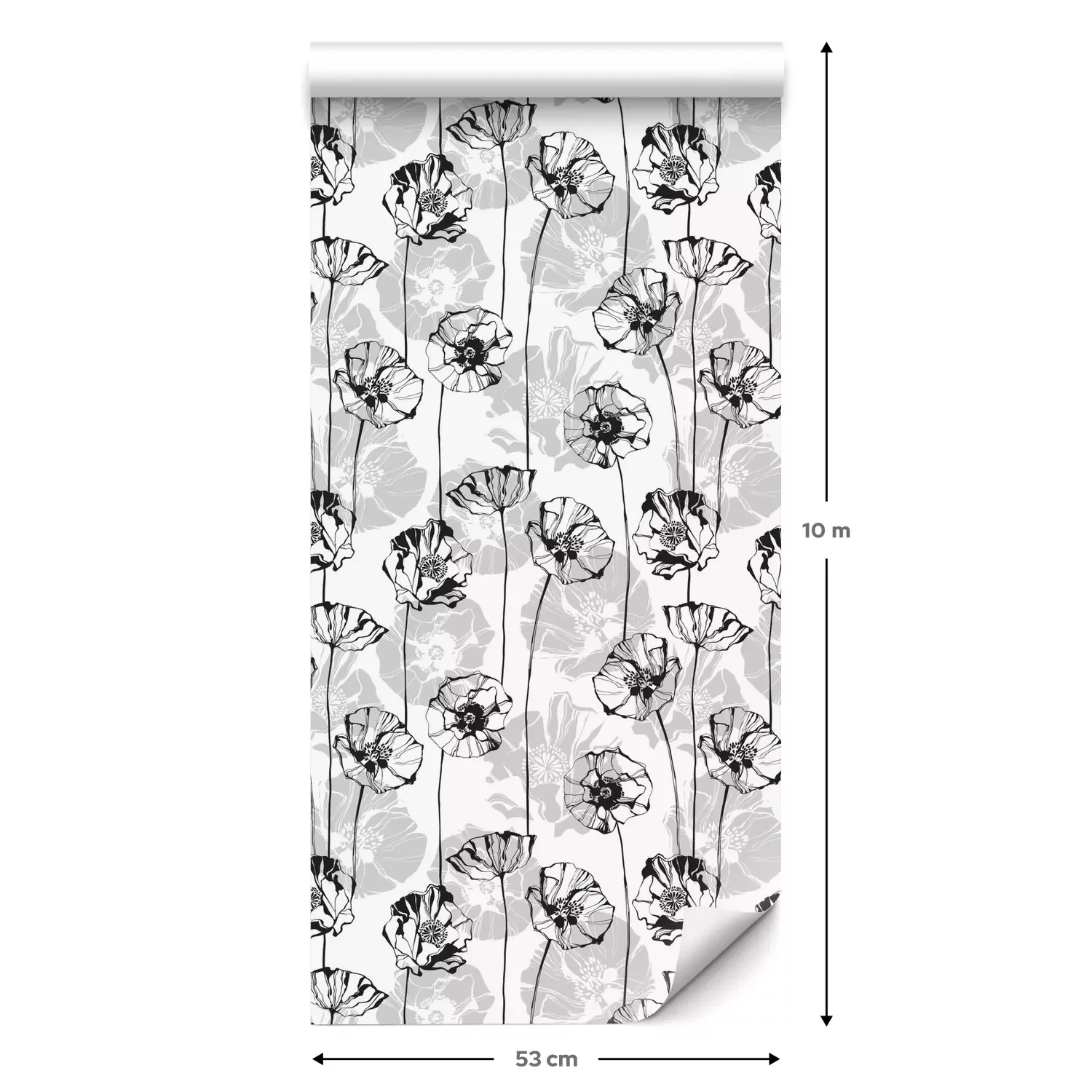 Eine Standard-Tapetenrolle hat die Maße 0,53 m x 10 m und deckt eine Wandfläche von etwa 5 m² ab.