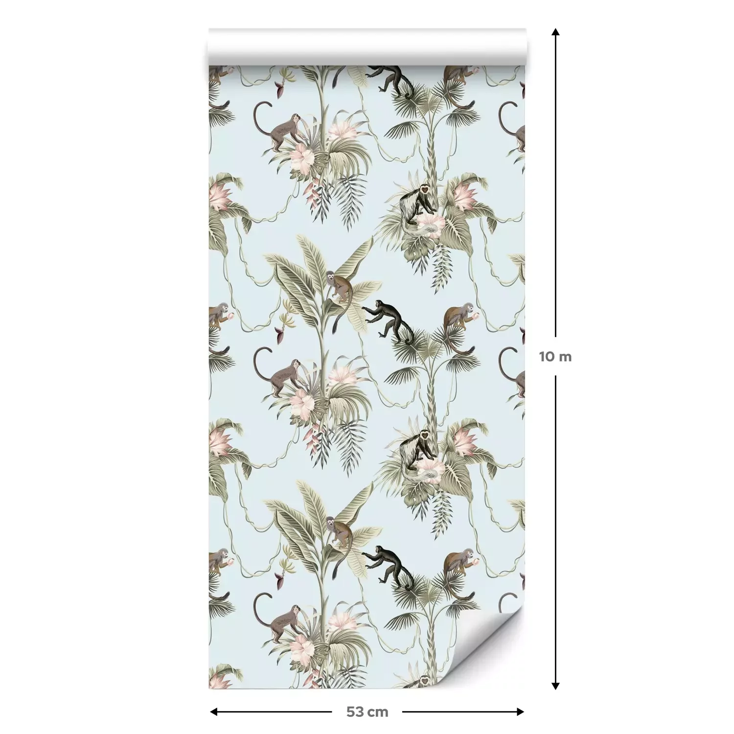 Eine Standard-Tapetenrolle hat die Maße 0,53 m x 10 m und deckt eine Wandfläche von etwa 5 m² ab.