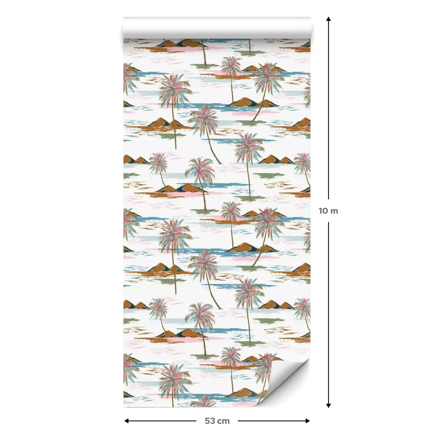 Eine Standard-Tapetenrolle hat die Maße 0,53 m x 10 m und deckt eine Wandfläche von etwa 5 m² ab.