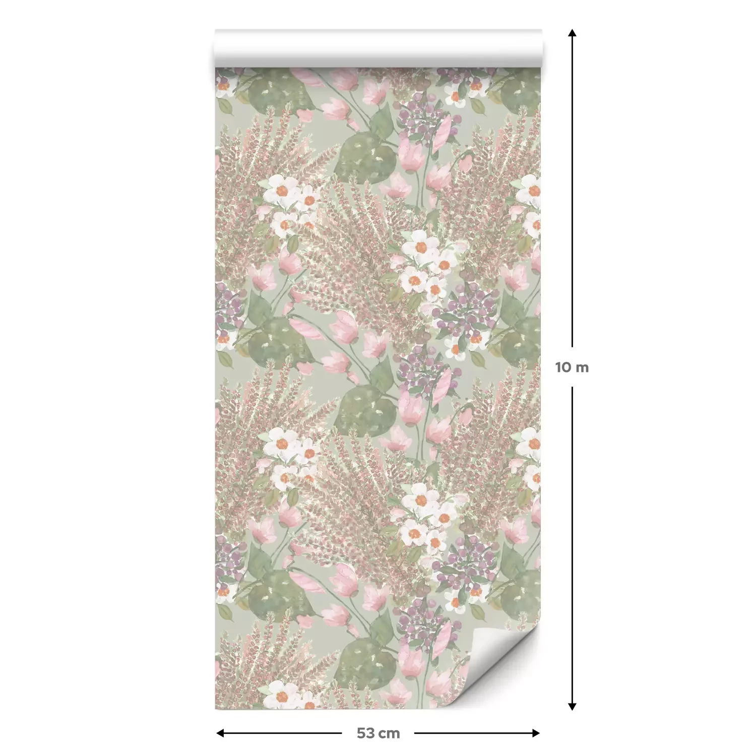 Eine Standard-Tapetenrolle hat die Maße 0,53 m x 10 m und deckt eine Wandfläche von etwa 5 m² ab.