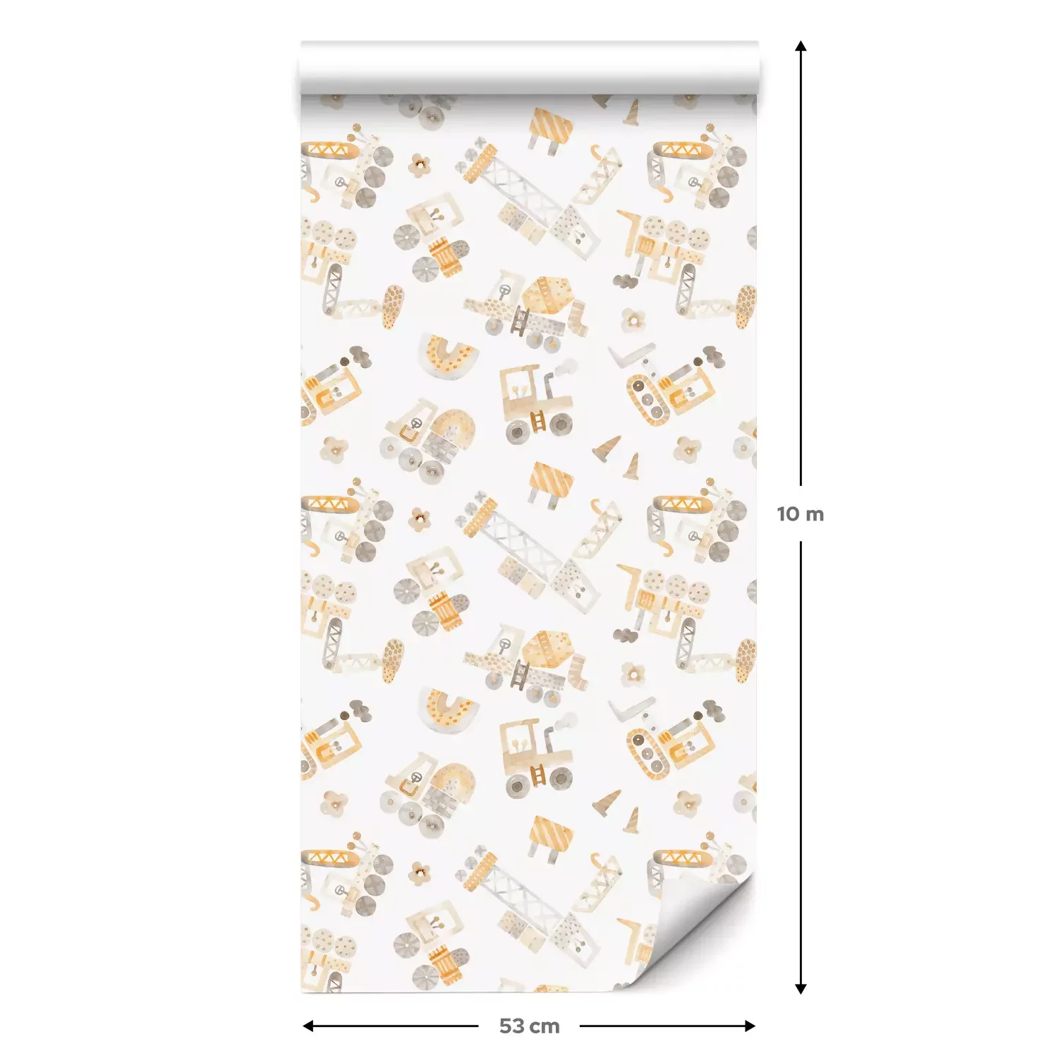 Eine Standard-Tapetenrolle hat die Maße 0,53 m x 10 m und deckt eine Wandfläche von etwa 5 m² ab.
