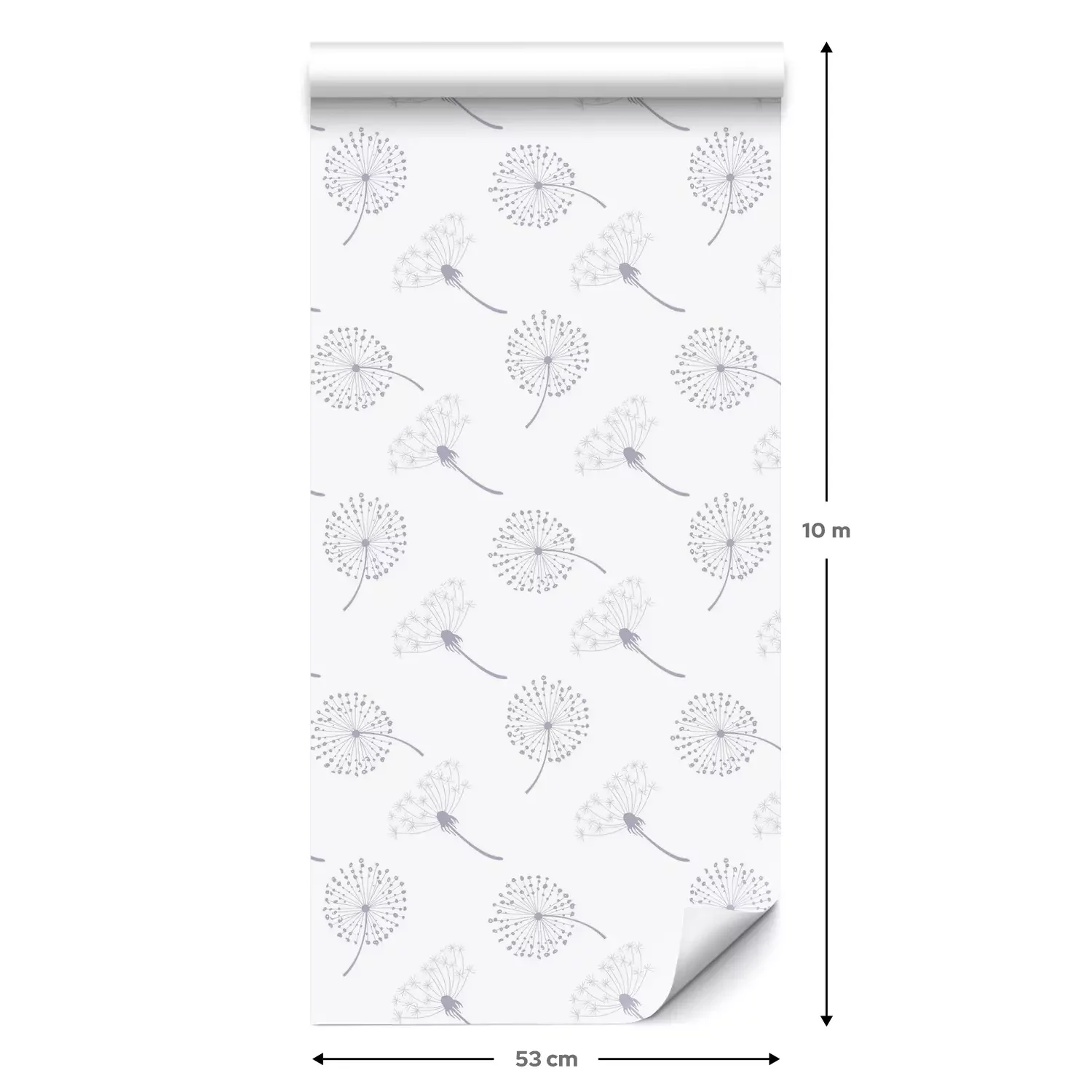 Eine Standard-Tapetenrolle hat die Maße 0,53 m x 10 m und deckt eine Wandfläche von etwa 5 m² ab.