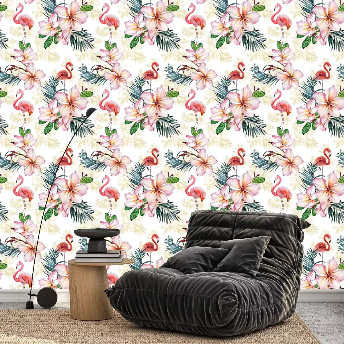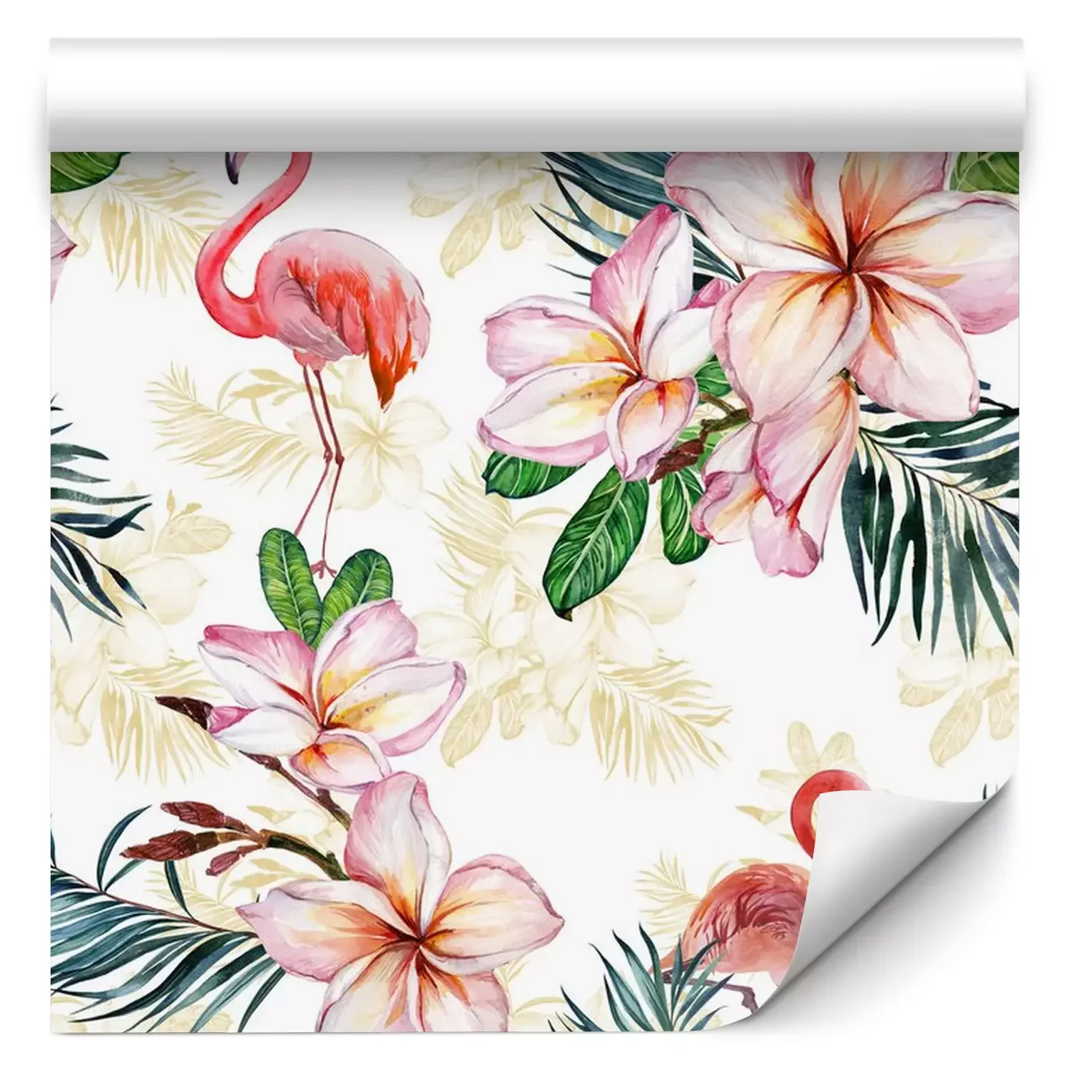 Rosa Blumen und VögelTapete