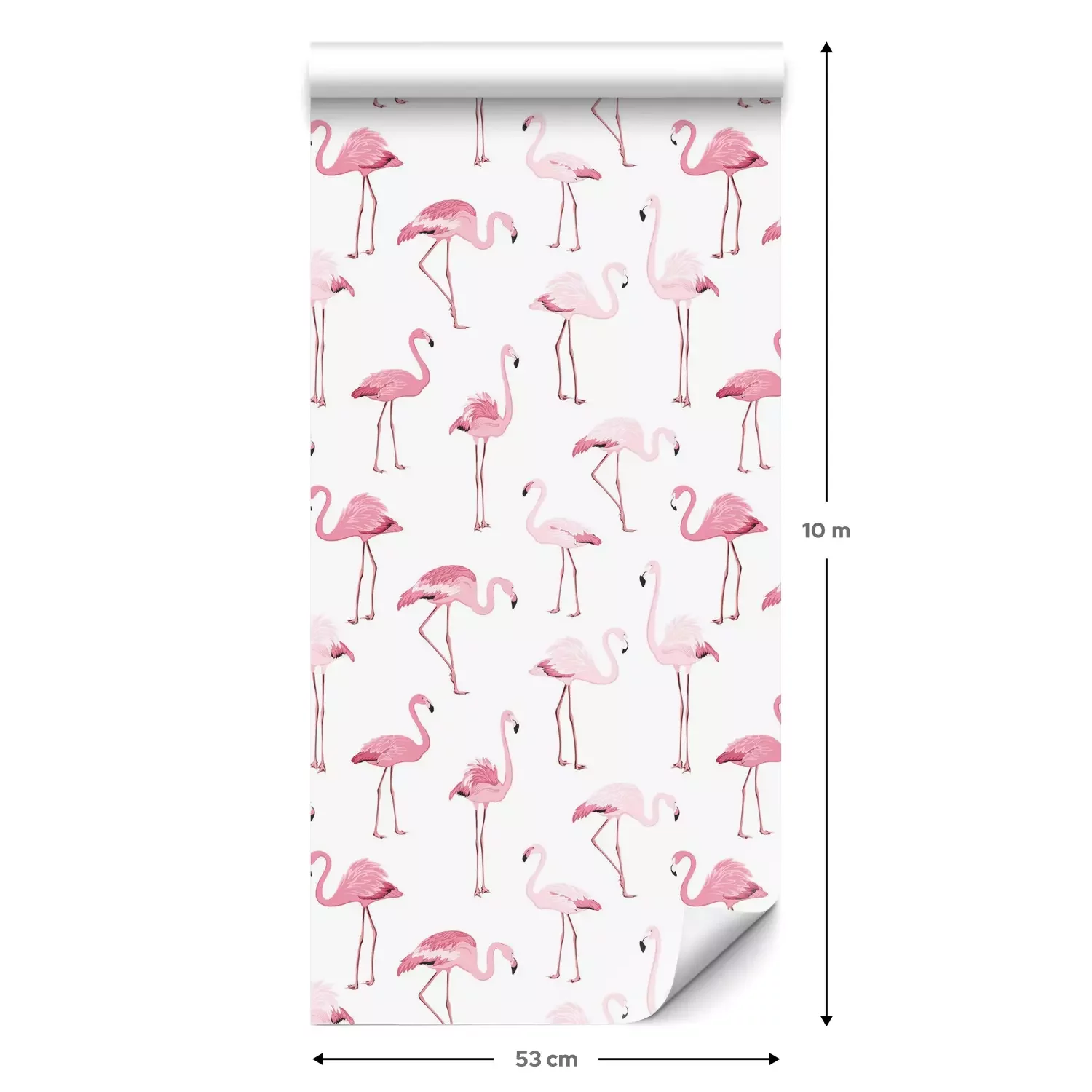Eine Standard-Tapetenrolle hat die Maße 0,53 m x 10 m und deckt eine Wandfläche von etwa 5 m² ab.