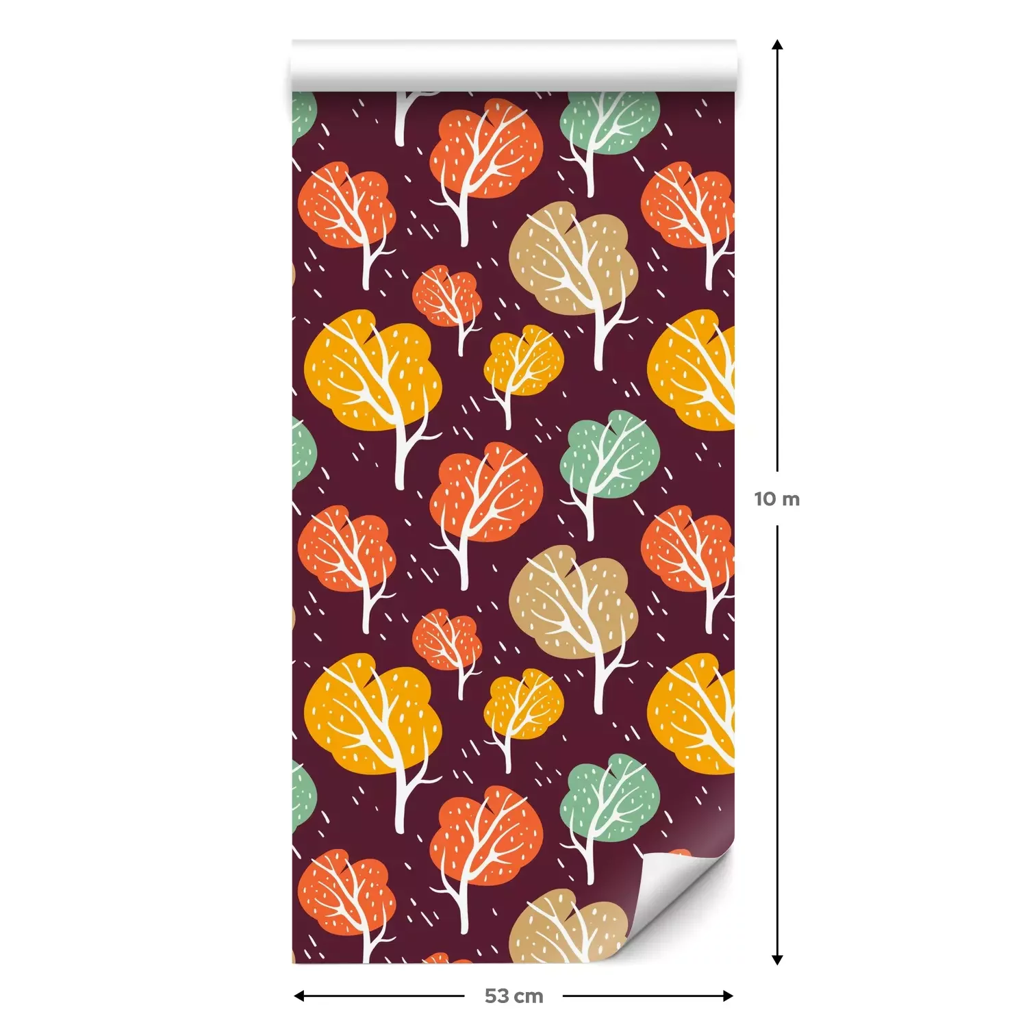 Eine Standard-Tapetenrolle hat die Maße 0,53 m x 10 m und deckt eine Wandfläche von etwa 5 m² ab.