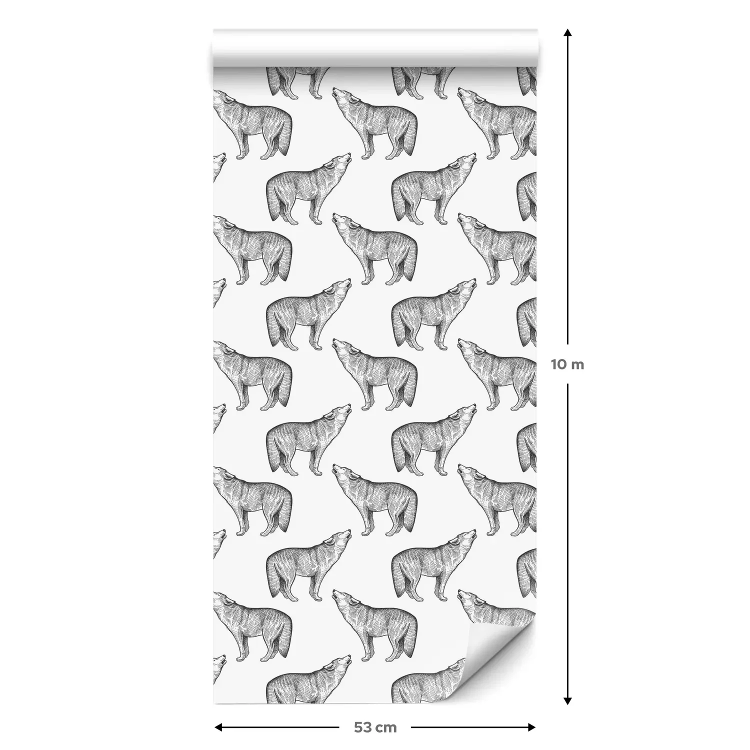 Eine Standard-Tapetenrolle hat die Maße 0,53 m x 10 m und deckt eine Wandfläche von etwa 5 m² ab.