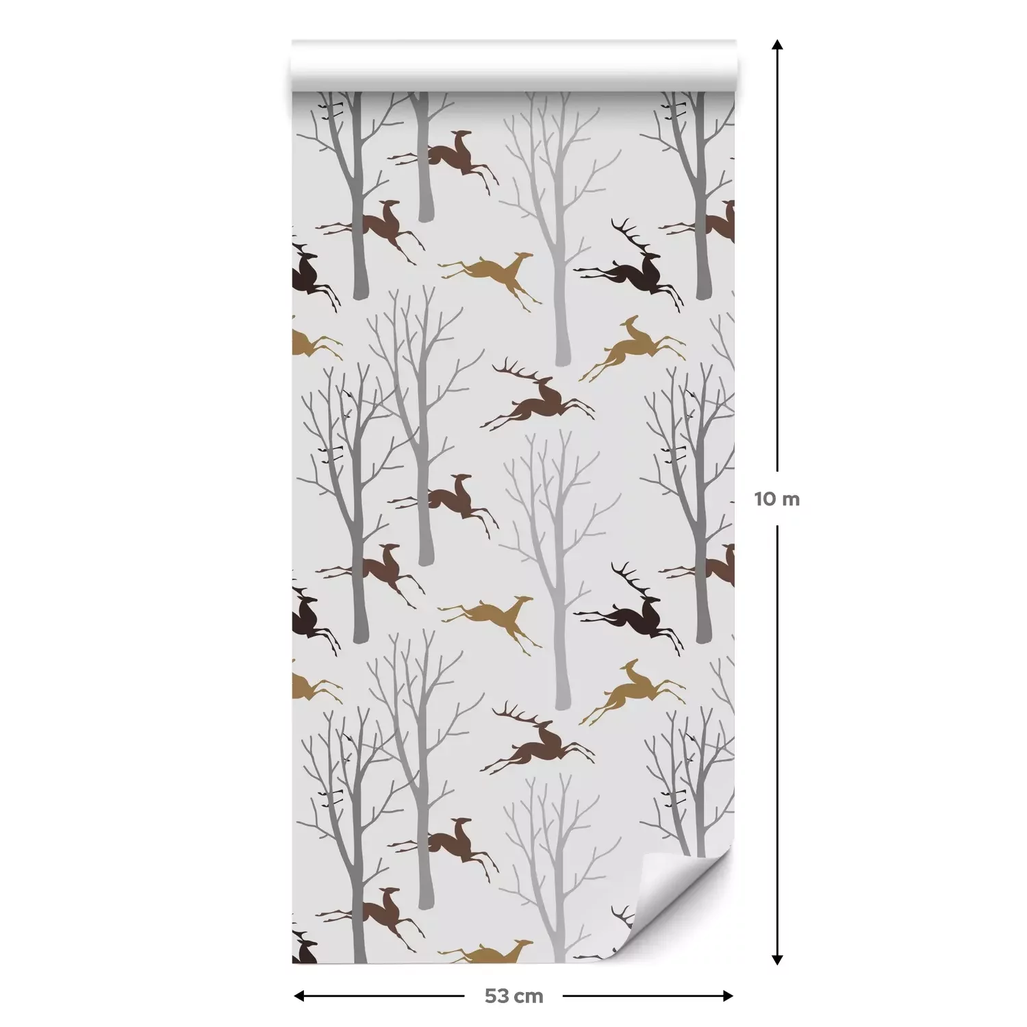Eine Standard-Tapetenrolle hat die Maße 0,53 m x 10 m und deckt eine Wandfläche von etwa 5 m² ab.