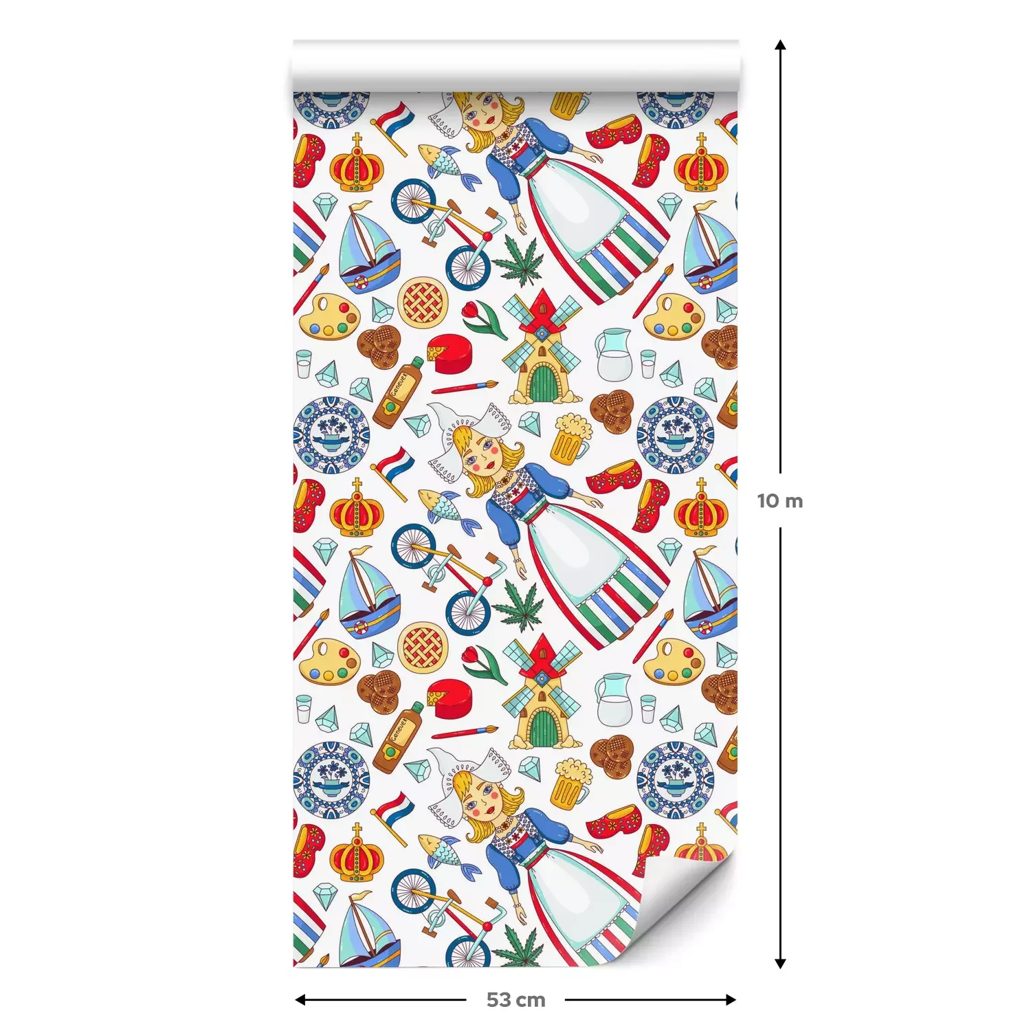 Eine Standard-Tapetenrolle hat die Maße 0,53 m x 10 m und deckt eine Wandfläche von etwa 5 m² ab.