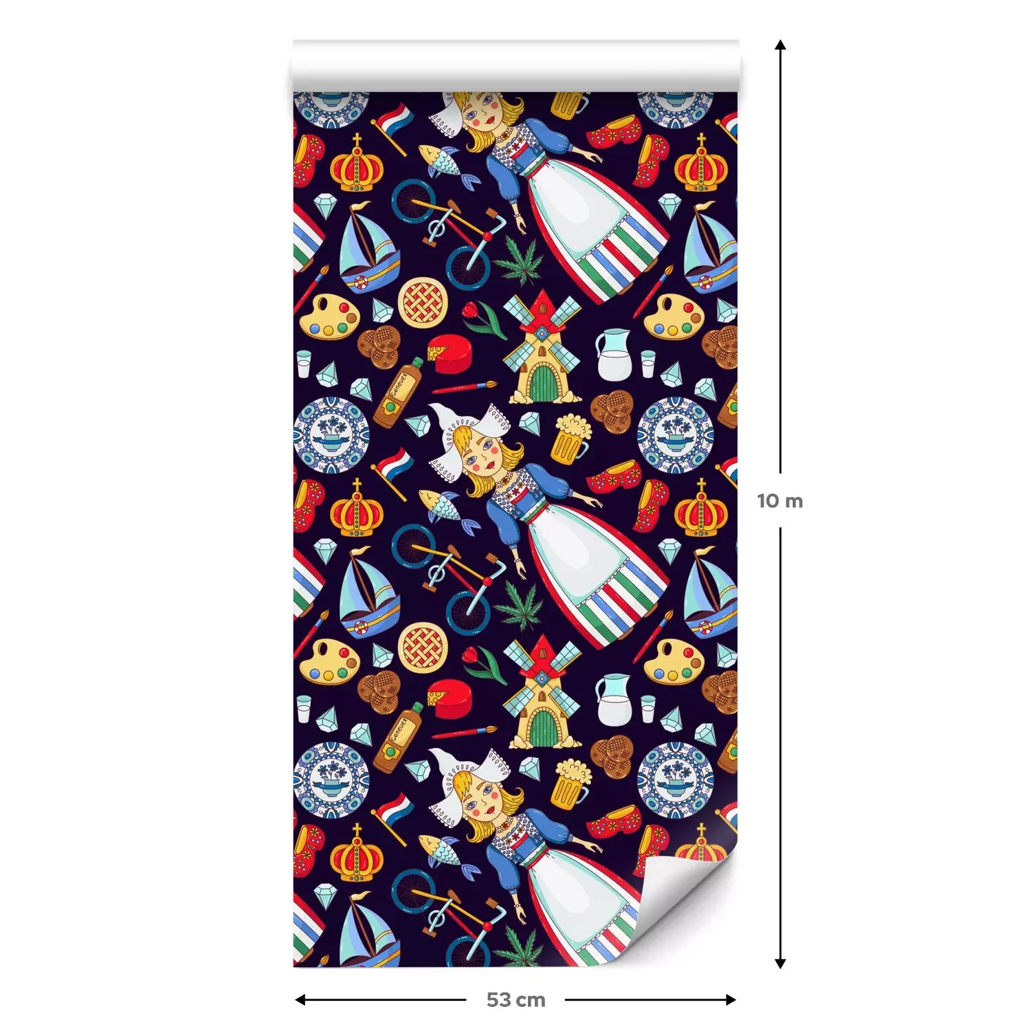 Eine Standard-Tapetenrolle hat die Maße 0,53 m x 10 m und deckt eine Wandfläche von etwa 5 m² ab.