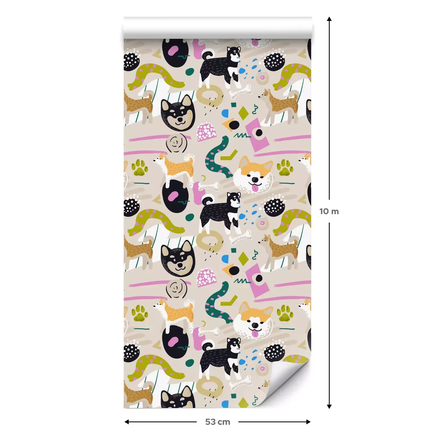 Eine Standard-Tapetenrolle hat die Maße 0,53 m x 10 m und deckt eine Wandfläche von etwa 5 m² ab.
