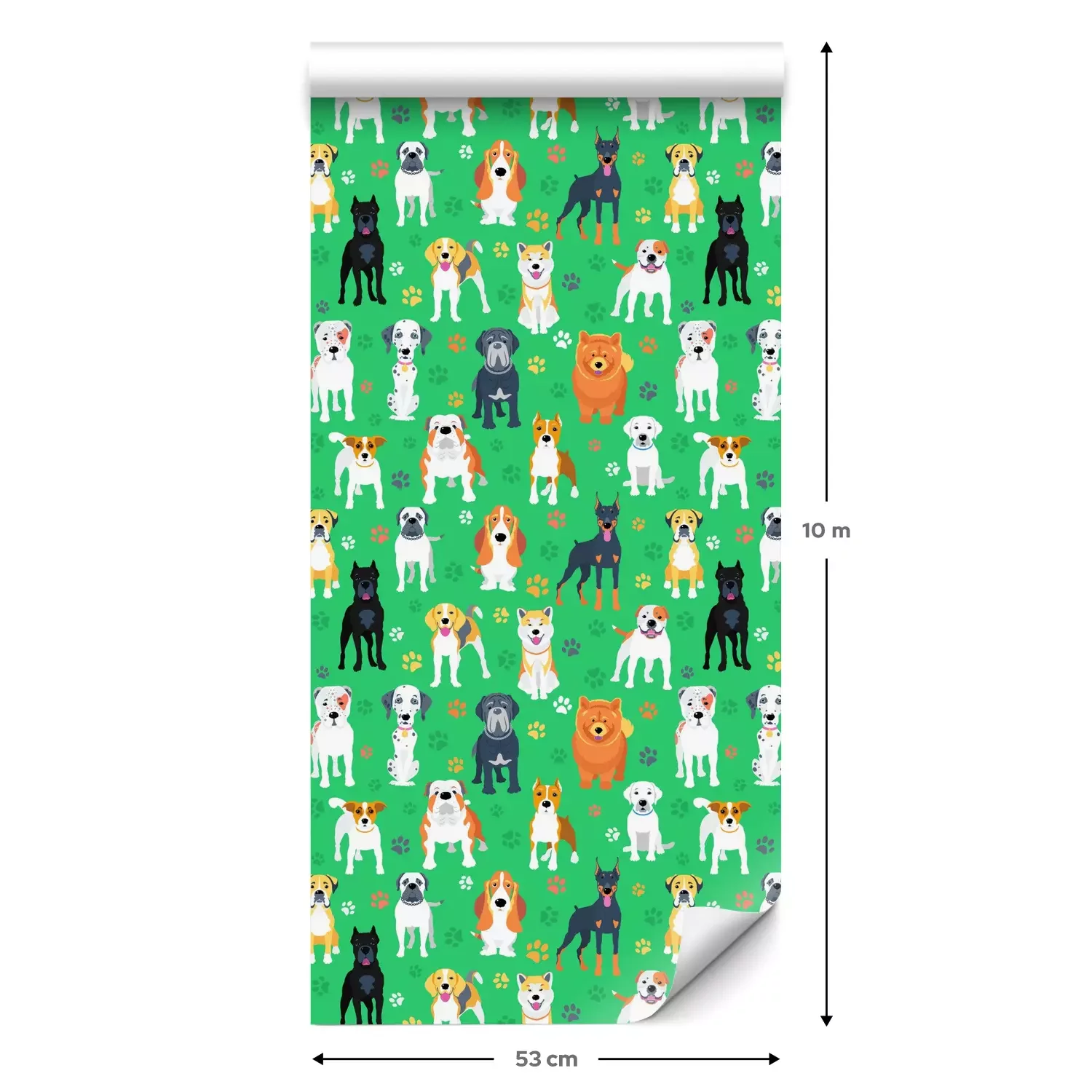 Eine Standard-Tapetenrolle hat die Maße 0,53 m x 10 m und deckt eine Wandfläche von etwa 5 m² ab.