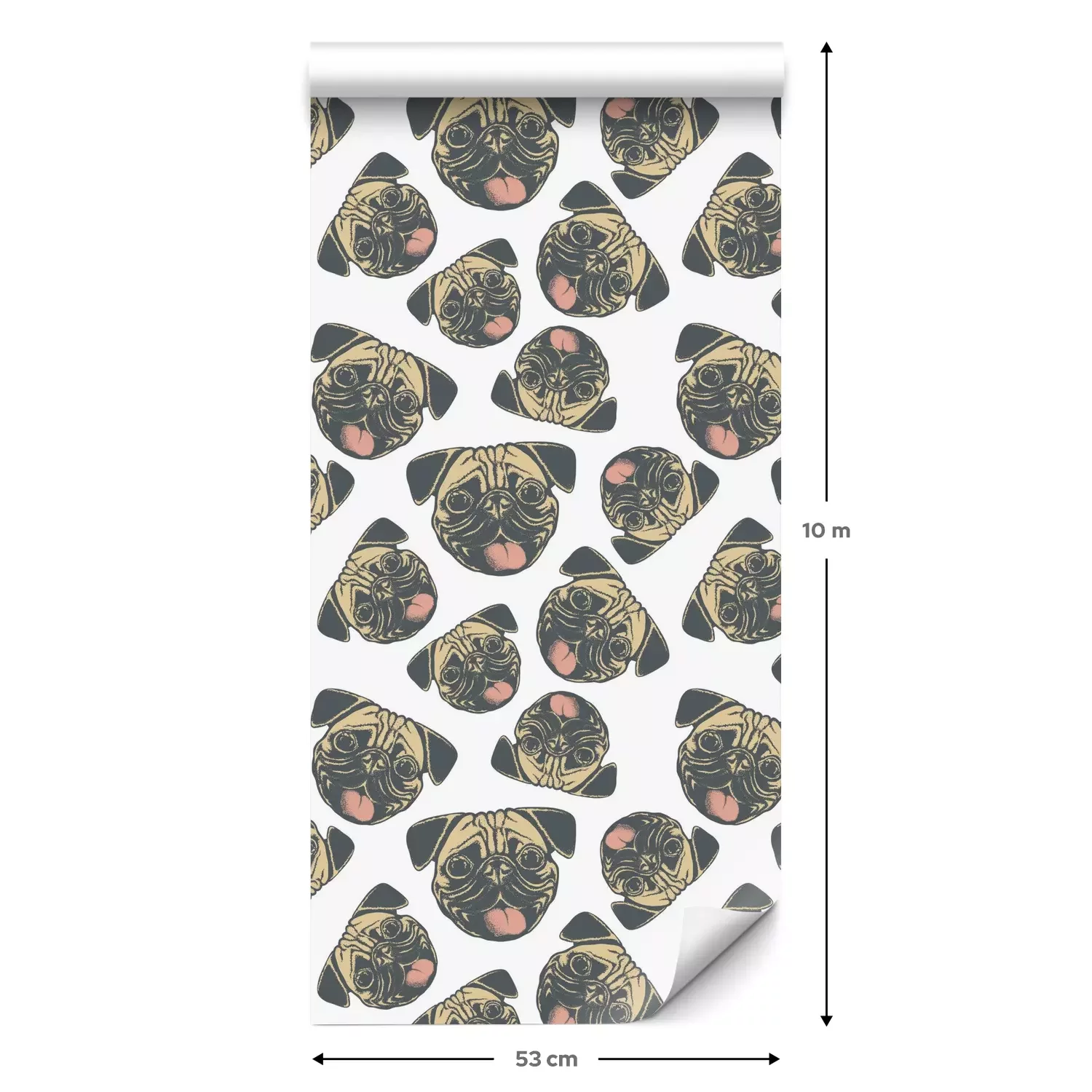 Eine Standard-Tapetenrolle hat die Maße 0,53 m x 10 m und deckt eine Wandfläche von etwa 5 m² ab.