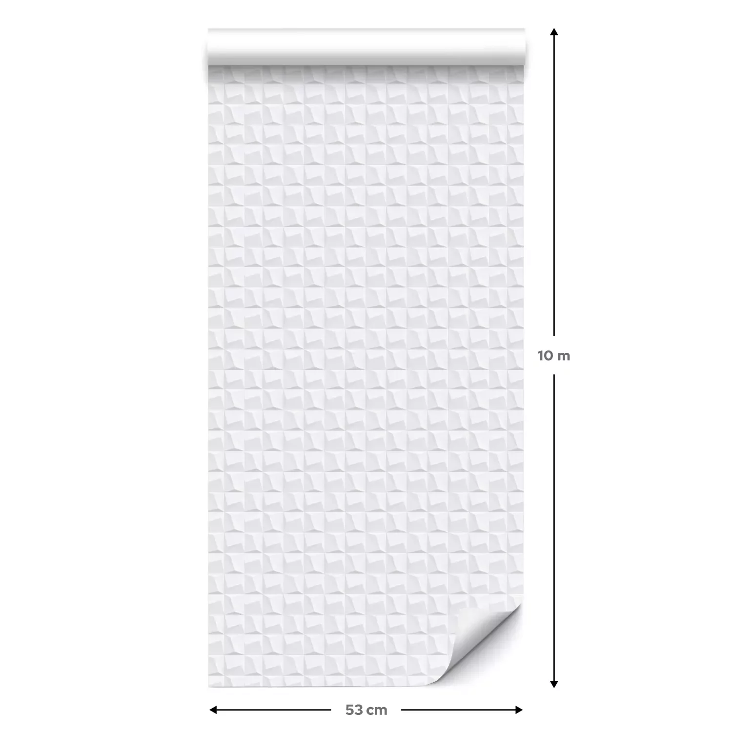 Eine Standard-Tapetenrolle hat die Maße 0,53 m x 10 m und deckt eine Wandfläche von etwa 5 m² ab.