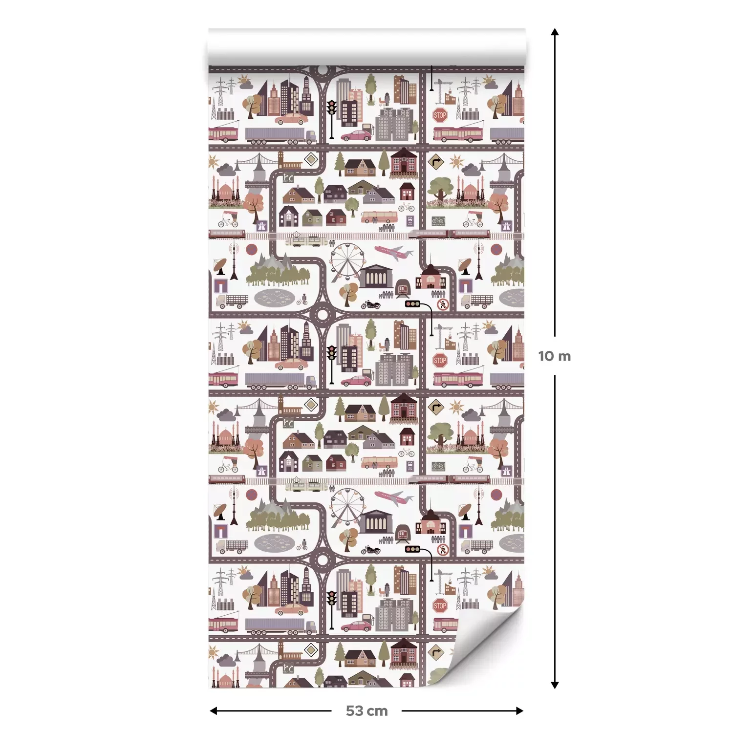 Eine Standard-Tapetenrolle hat die Maße 0,53 m x 10 m und deckt eine Wandfläche von etwa 5 m² ab.