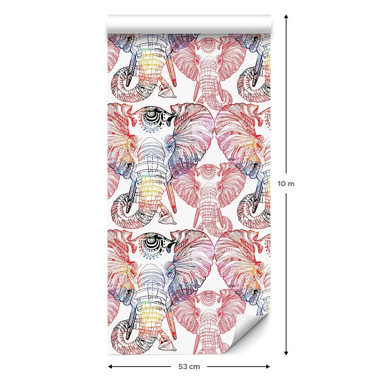 Eine Standard-Tapetenrolle hat die Maße 0,53 m x 10 m und deckt eine Wandfläche von etwa 5 m² ab.