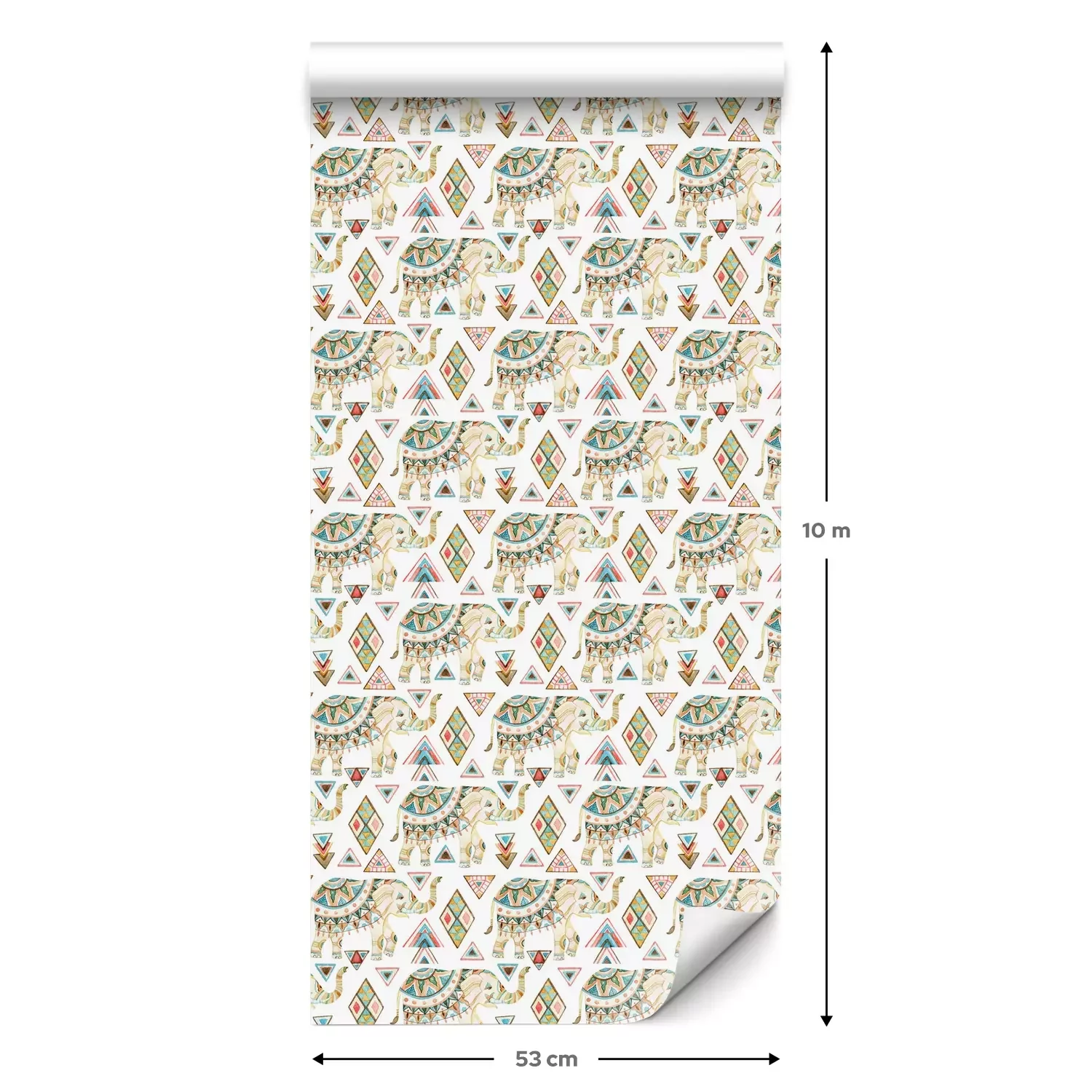 Eine Standard-Tapetenrolle hat die Maße 0,53 m x 10 m und deckt eine Wandfläche von etwa 5 m² ab.