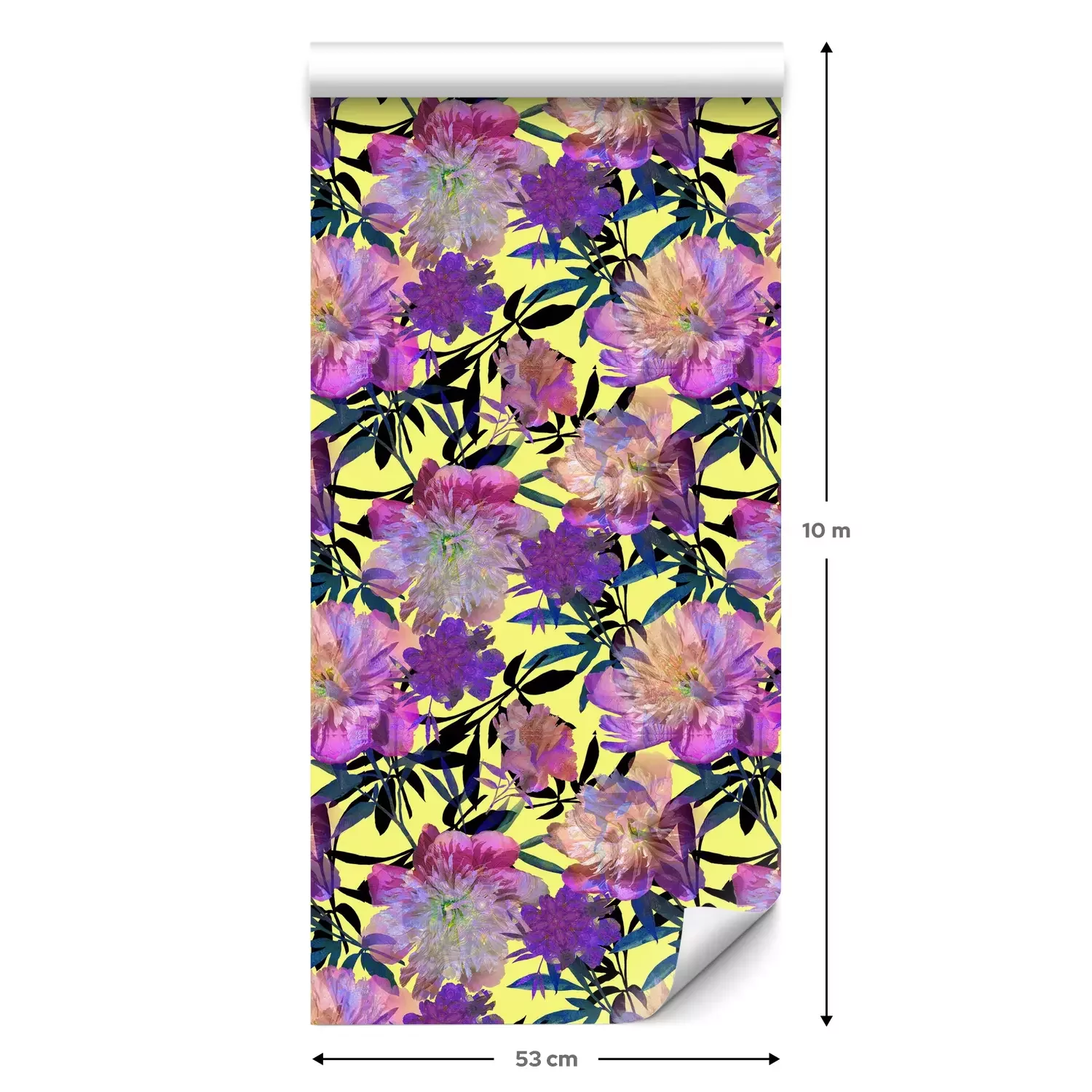 Eine Standard-Tapetenrolle hat die Maße 0,53 m x 10 m und deckt eine Wandfläche von etwa 5 m² ab.