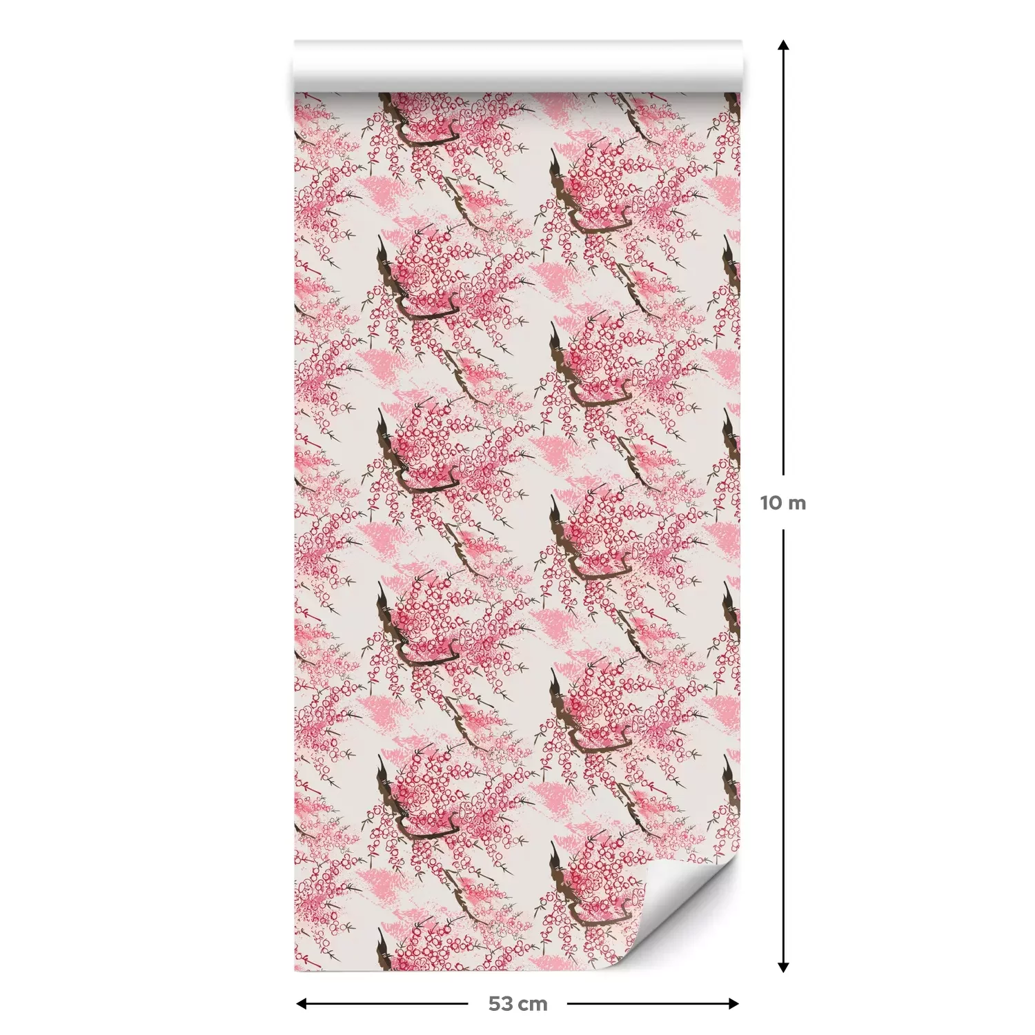 Eine Standard-Tapetenrolle hat die Maße 0,53 m x 10 m und deckt eine Wandfläche von etwa 5 m² ab.