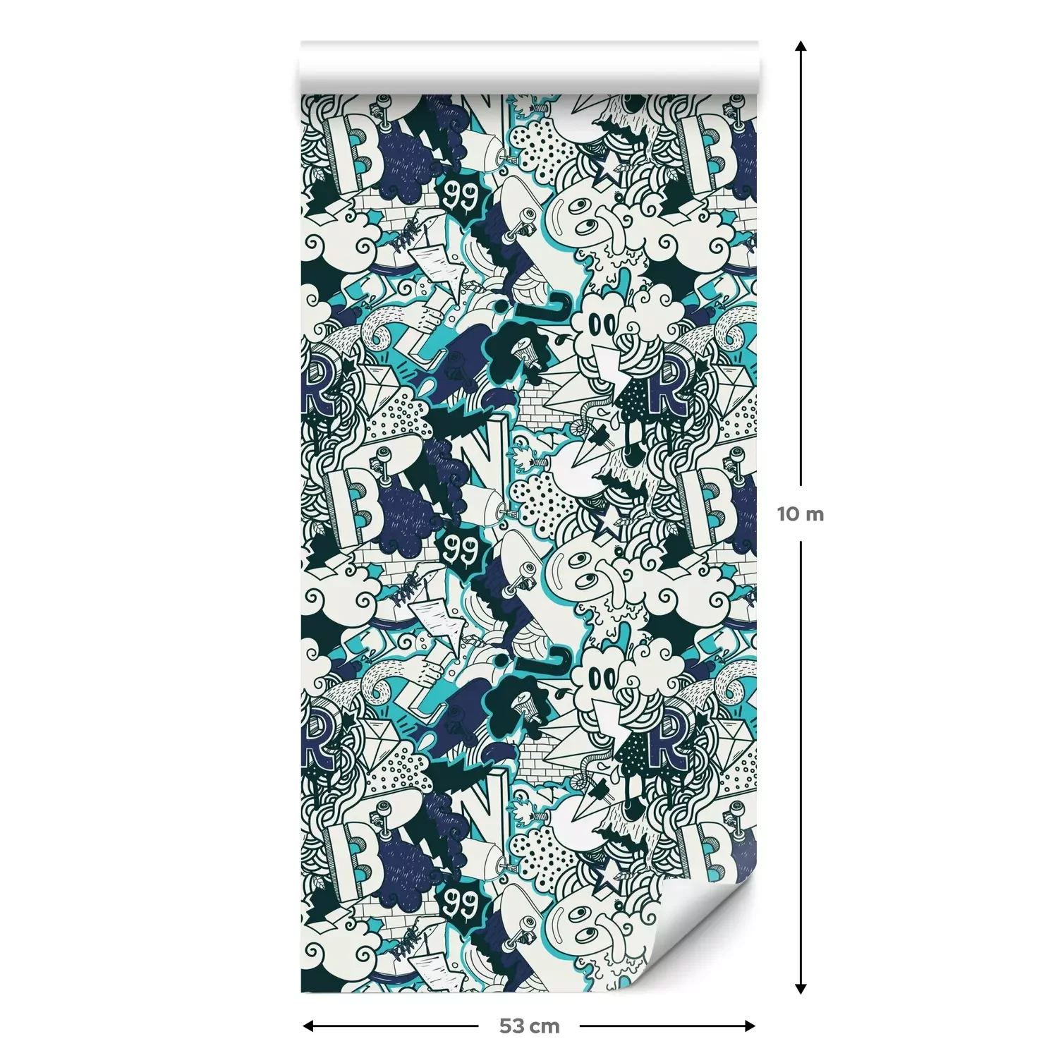 Eine Standard-Tapetenrolle hat die Maße 0,53 m x 10 m und deckt eine Wandfläche von etwa 5 m² ab.