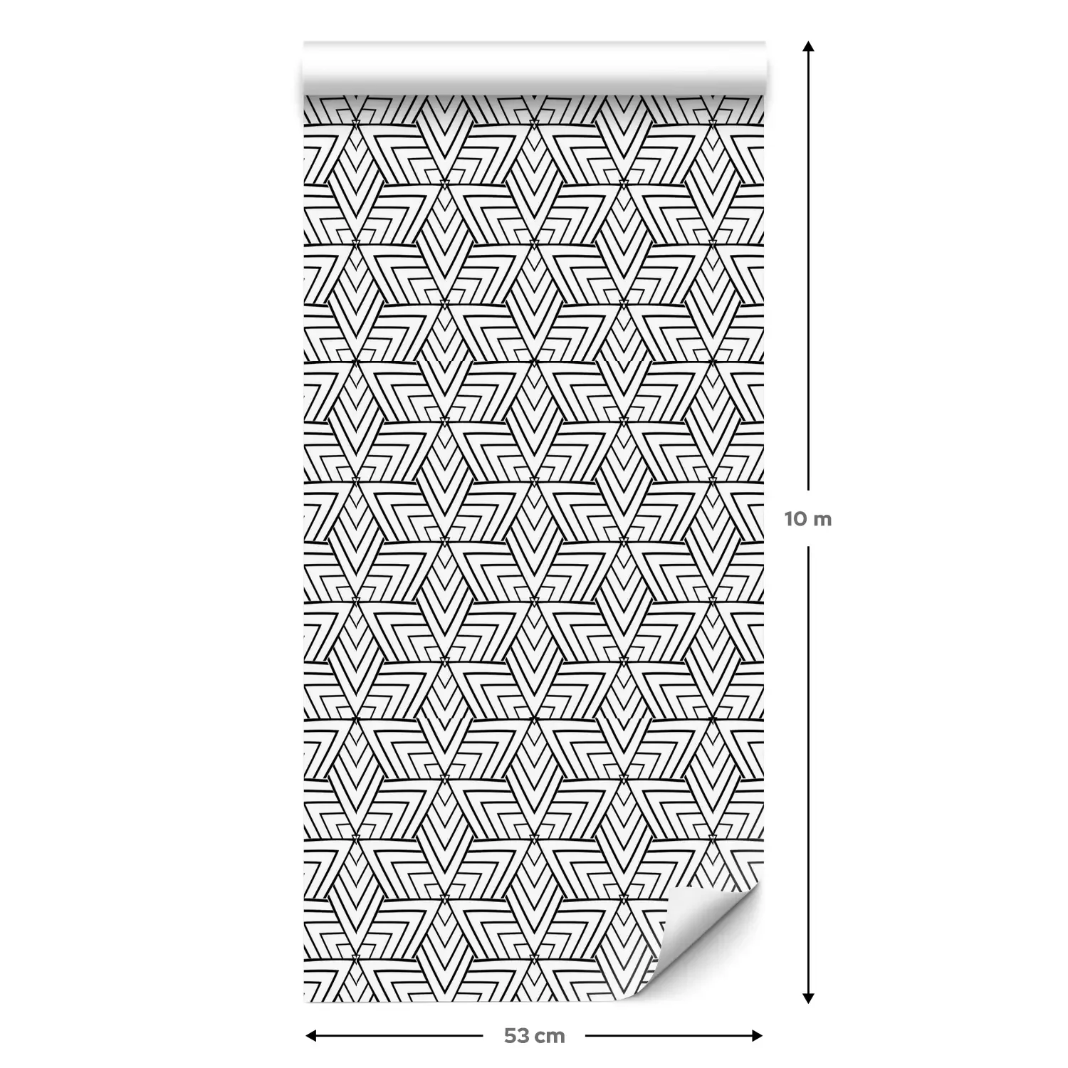 Eine Standard-Tapetenrolle hat die Maße 0,53 m x 10 m und deckt eine Wandfläche von etwa 5 m² ab.