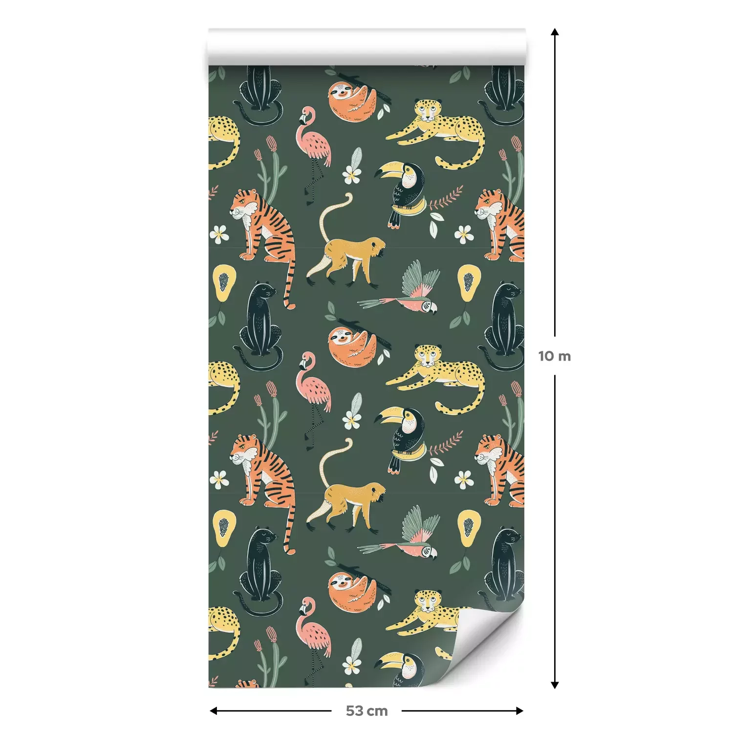 Eine Standard-Tapetenrolle hat die Maße 0,53 m x 10 m und deckt eine Wandfläche von etwa 5 m² ab.