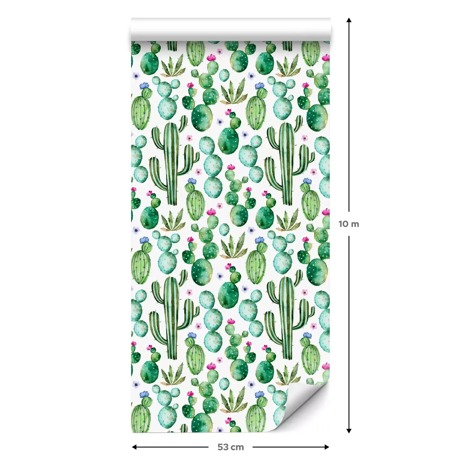 Eine Standard-Tapetenrolle hat die Maße 0,53 m x 10 m und deckt eine Wandfläche von etwa 5 m² ab.