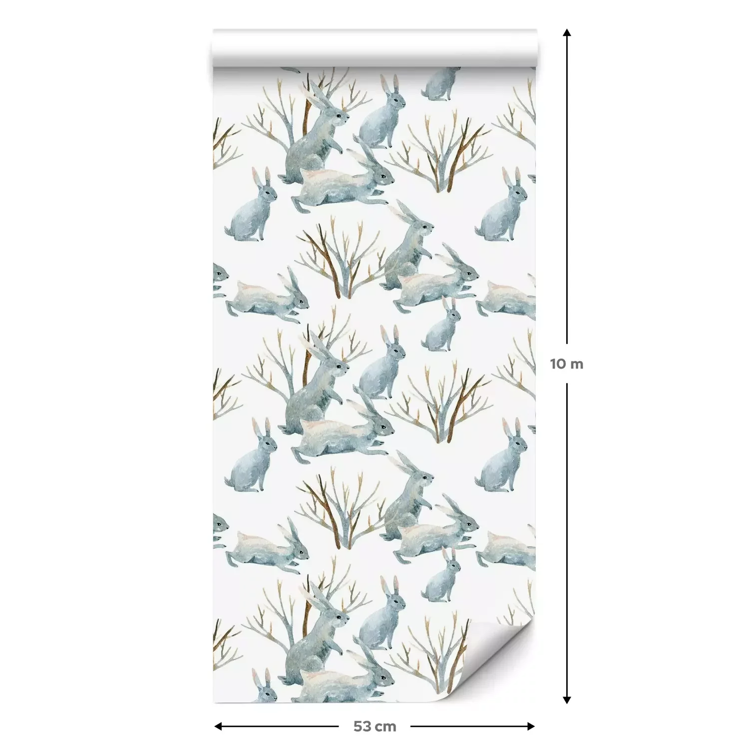 Eine Standard-Tapetenrolle hat die Maße 0,53 m x 10 m und deckt eine Wandfläche von etwa 5 m² ab.